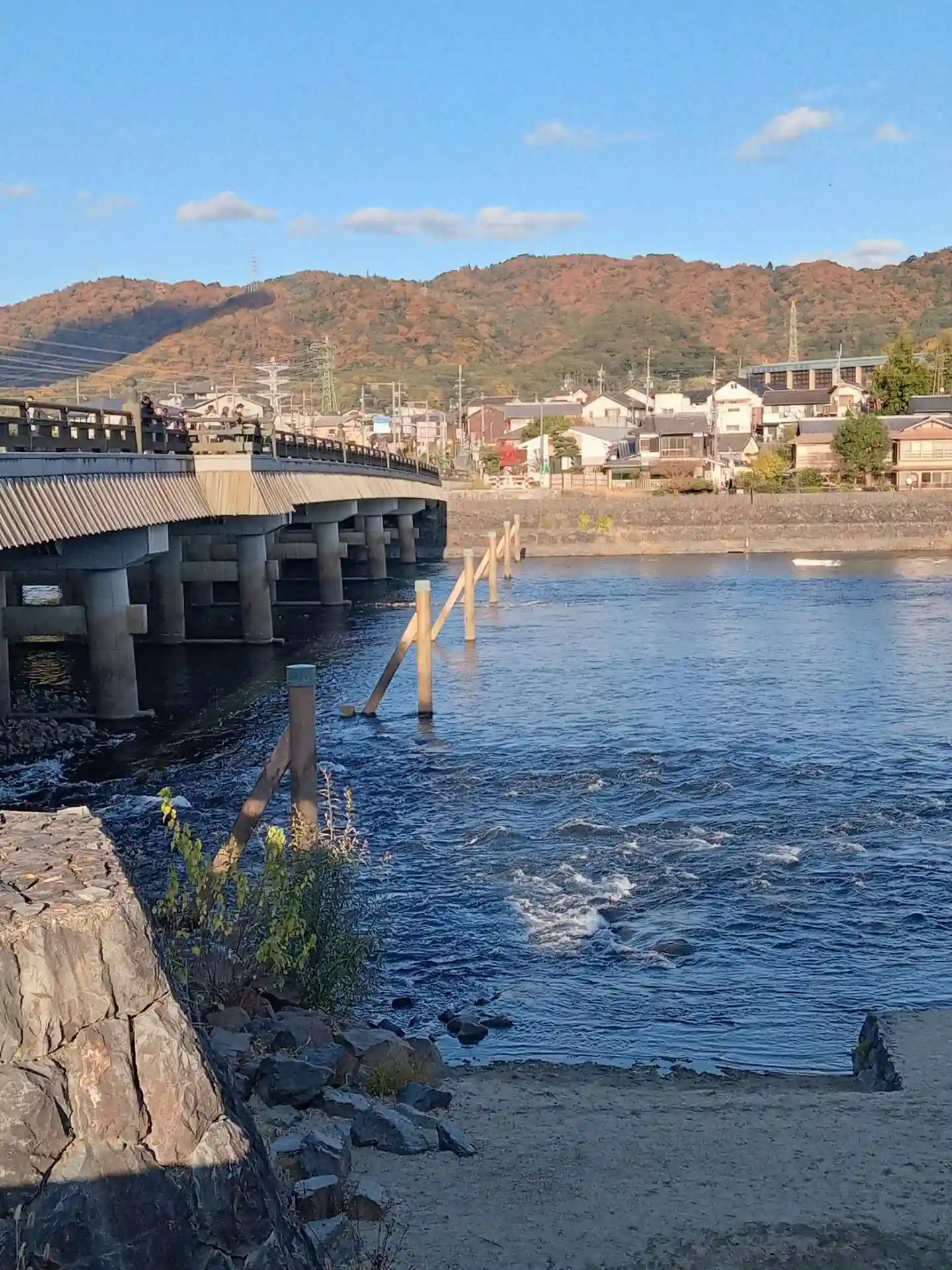 宇治川 宇治を離れる時は、たいていはベンチに座りボーっとします。"無"にするといいますか···。心が落ち着きます。水の流れを見ていると···😌
