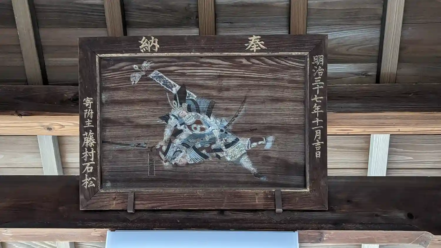 小規模の三間社流造、銅板葺。
