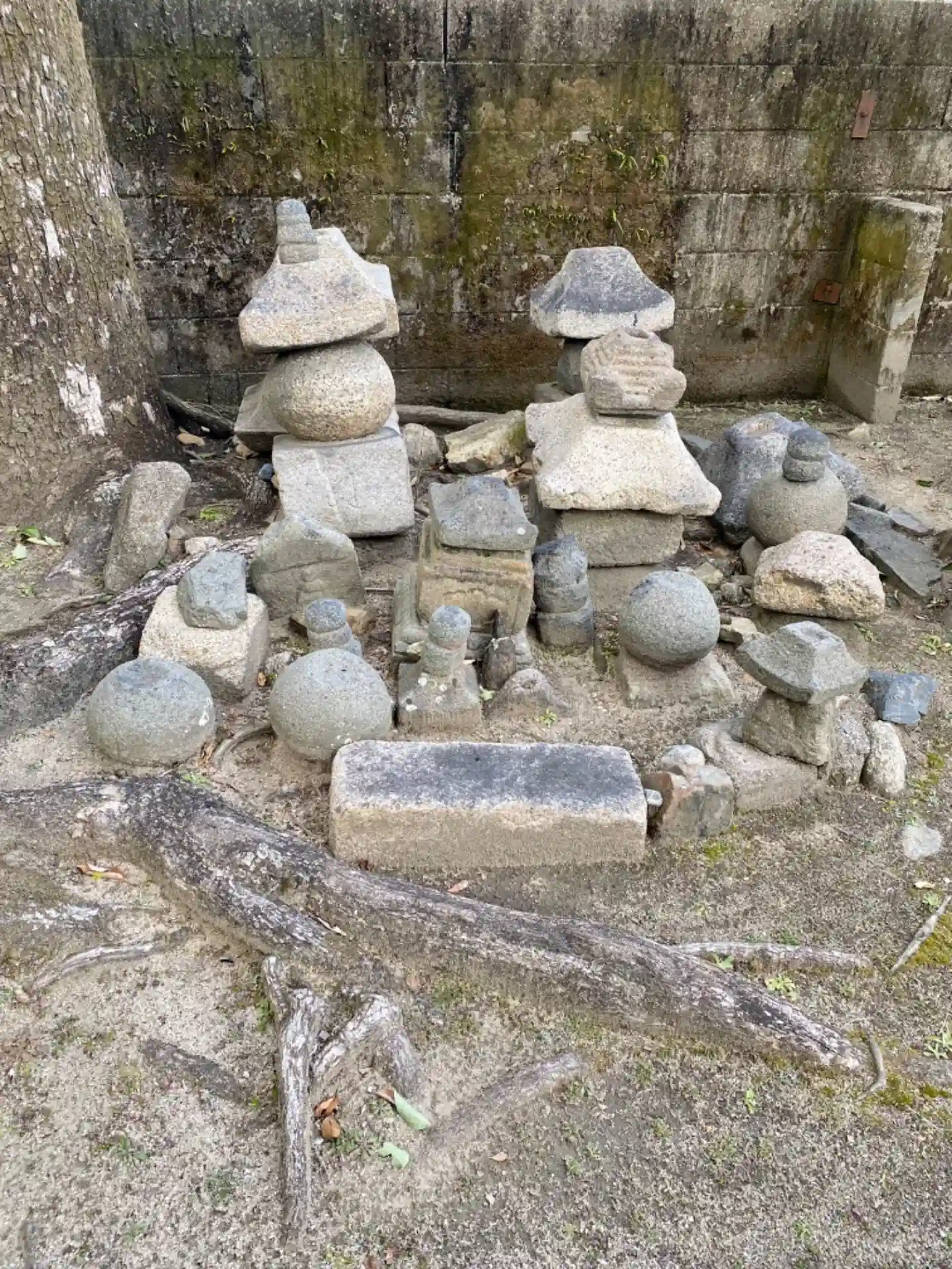 野神は、佐古の若宮八幡宮の西側、30坪ほどの境内に古い石塔を集めて祀られています。