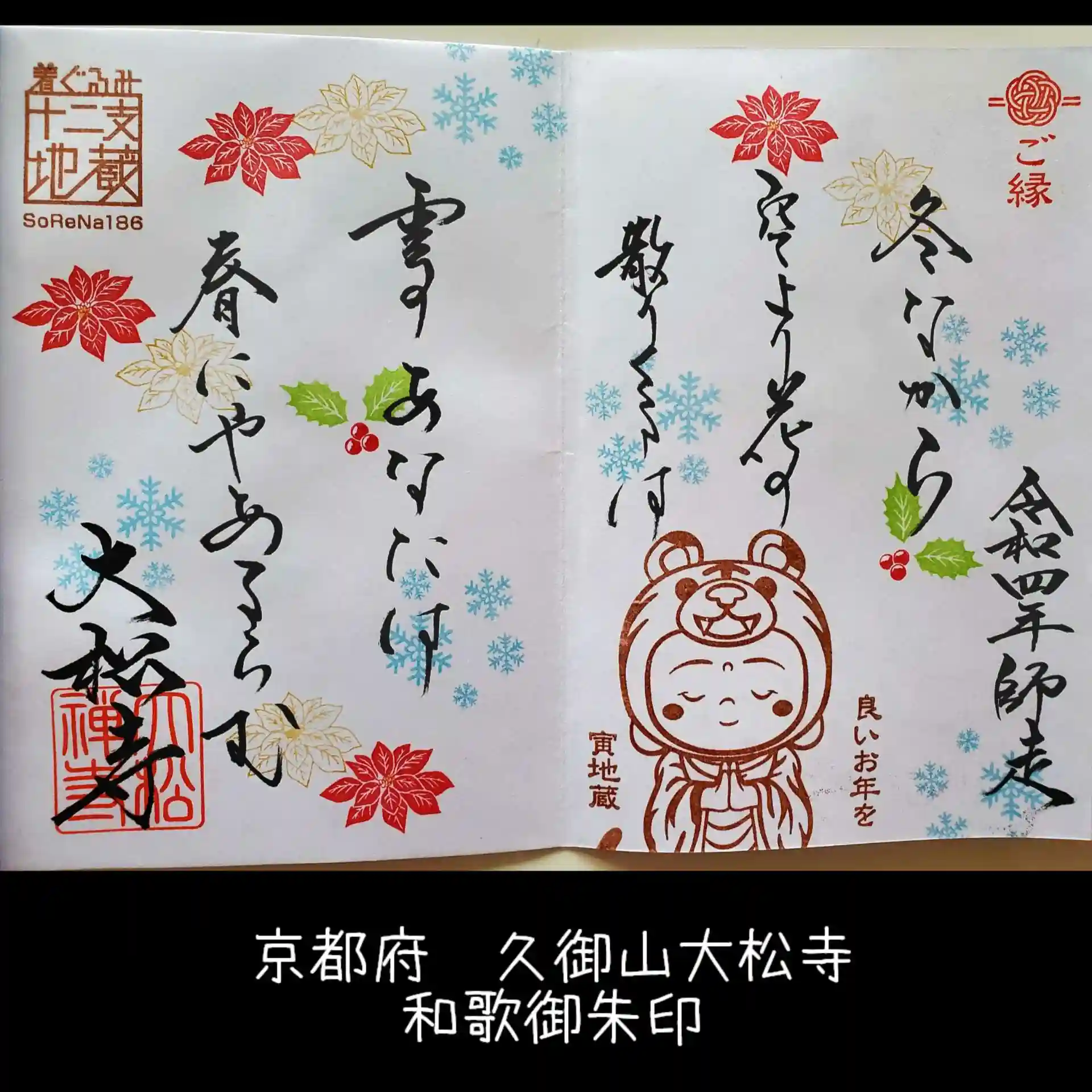 12月の花ポインセチアと雪❄️の結晶が素敵な御朱印です✨