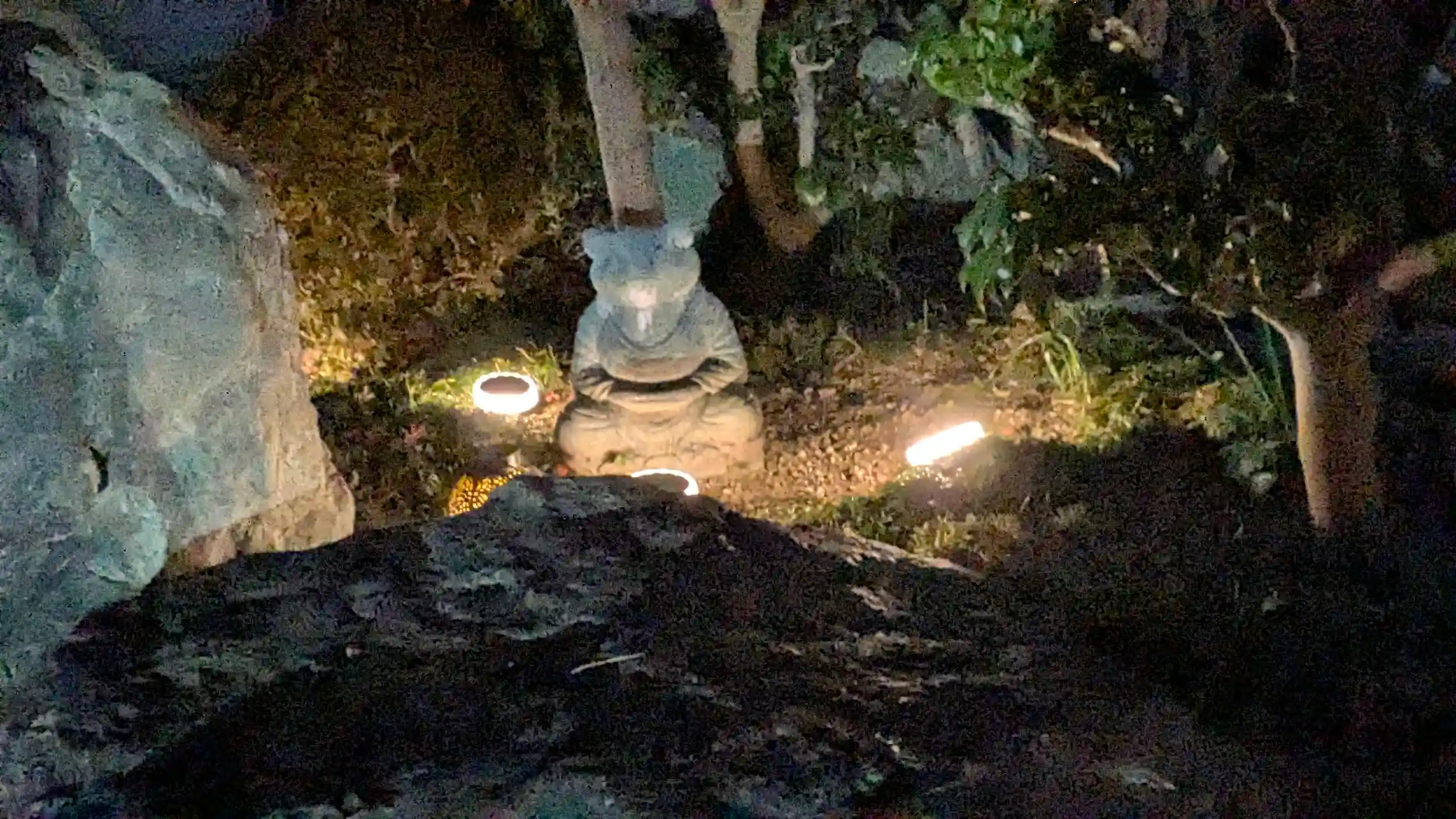 玉田神社を出たのが16時半過ぎていたので間に合うかなぁと思いながら大松禅寺さんへ。17時間に合わなかったぁと玄関へ向かうと受付16時まででした😱やっちまったと思いながらせっかくなのでインターホンを・・・御朱印帳受取だけだったので大丈夫でした😂なんだかんだで3ヶ月分溜まっていた御朱印を拝受。扇型の朱印帳に綺麗に描いていただいておりました😍年末のご挨拶をさせていただきました。夜に来ることがなかったため参道が綺麗にライトアップされているのを初めて知りました😲そして帰り際に神牛石にお参り。今年最後の満月がちょうどあがってきておりました🌕️