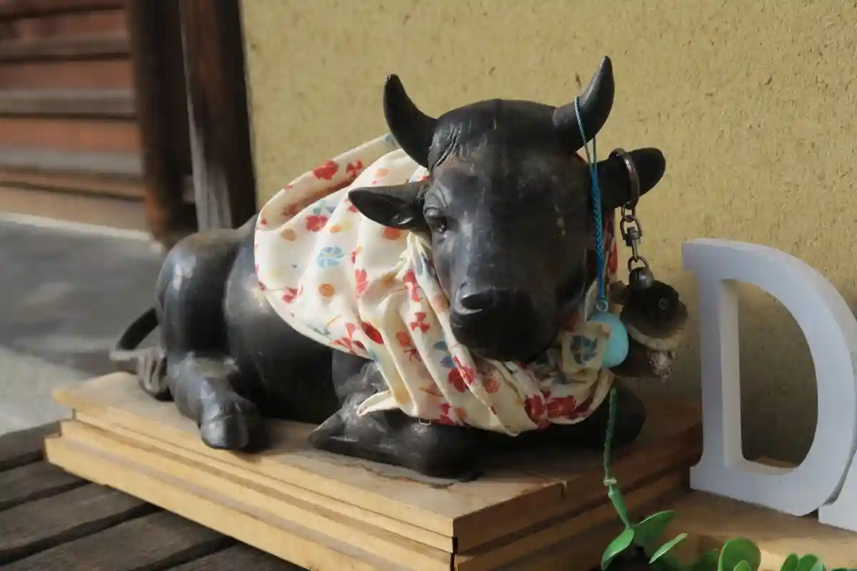 いつも対面する牛さんも、節分の準備万端なるも寒そうな佇まい。