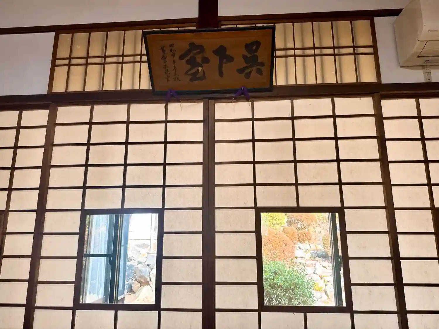 お寺の窓から見える伊吹山