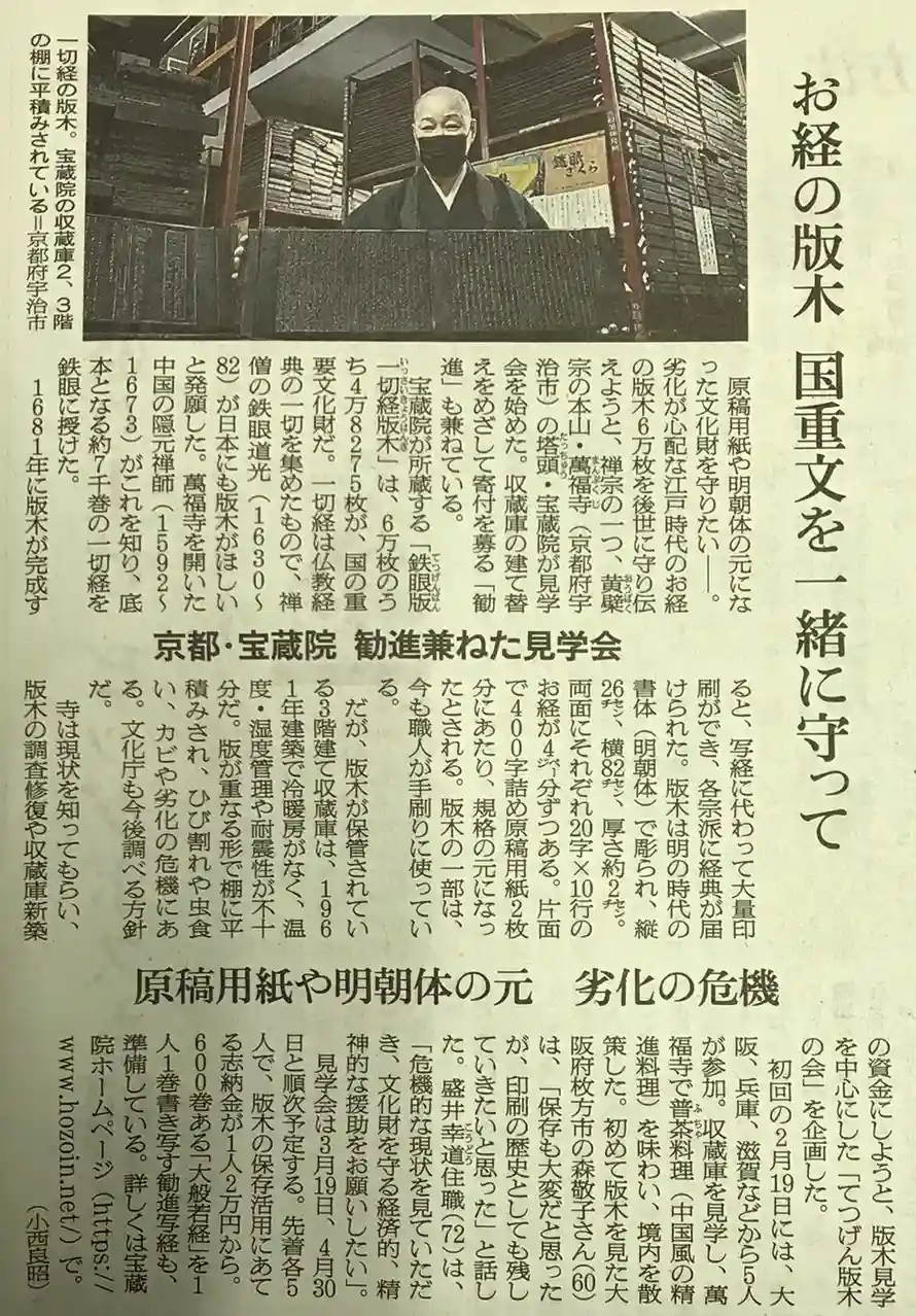 国指定重要文化財『鉄眼版一切経版木』の保全保護活動の一環として、