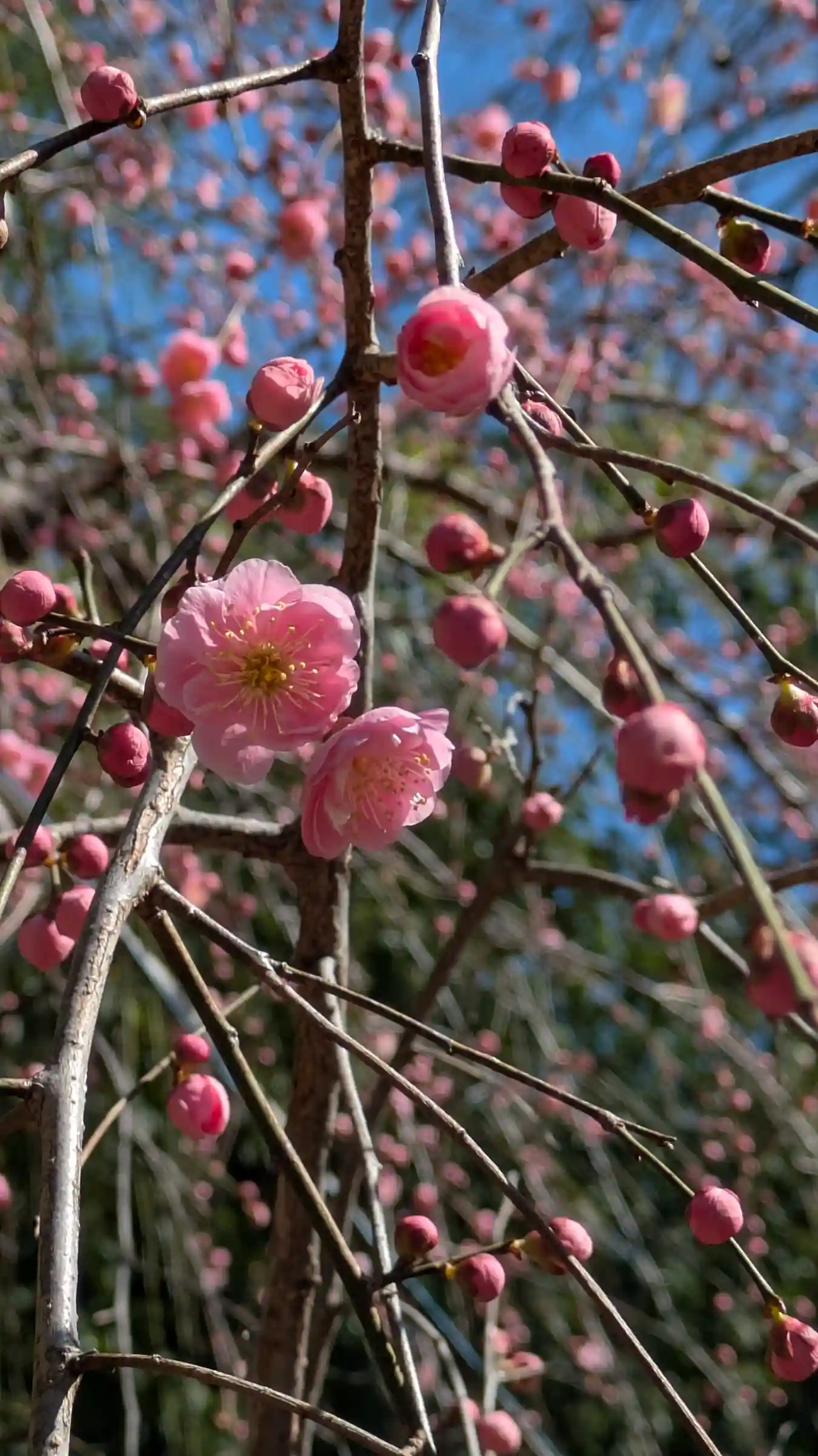舞殿。枝垂れ梅が良き感じで咲いてきてました