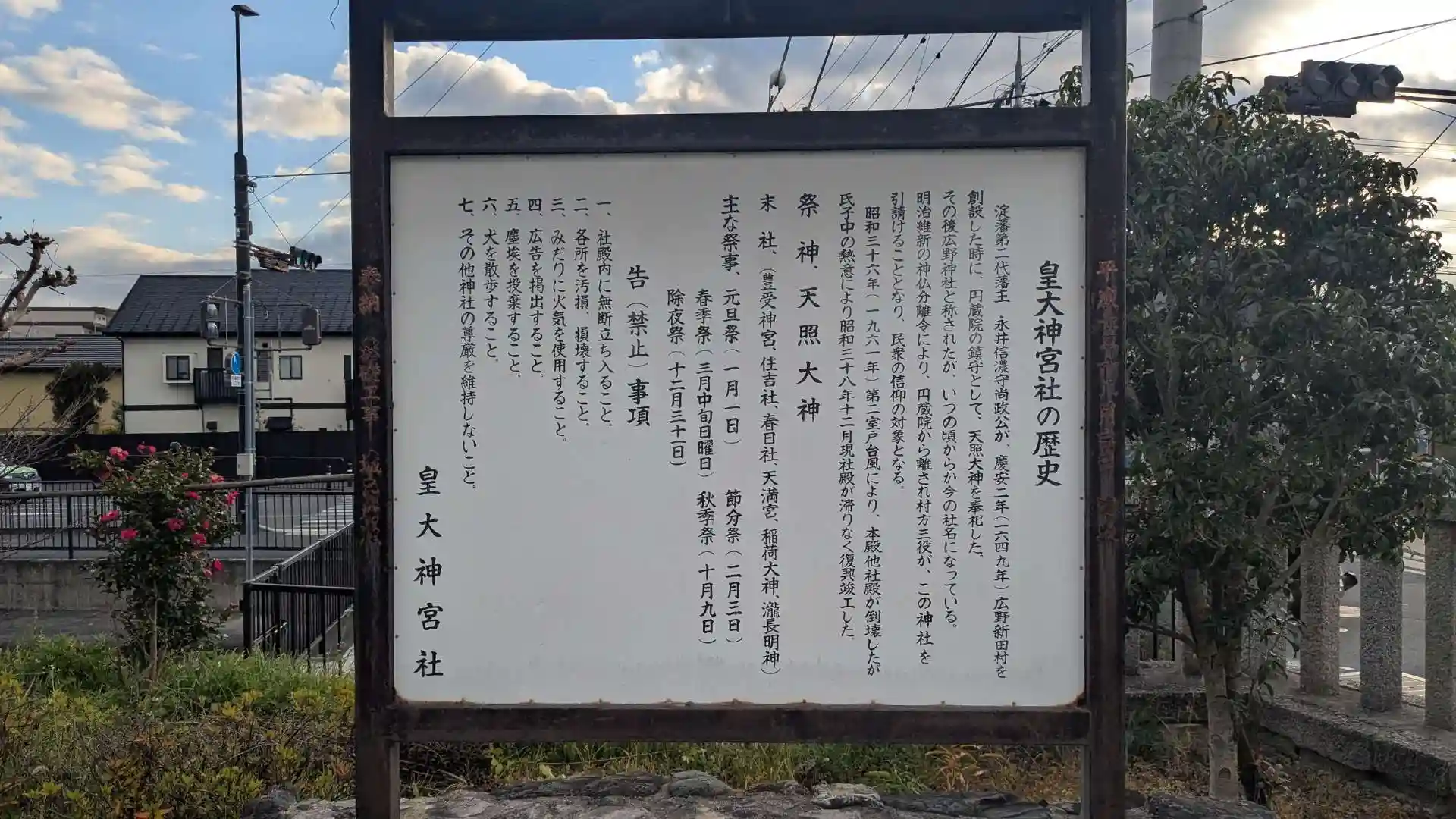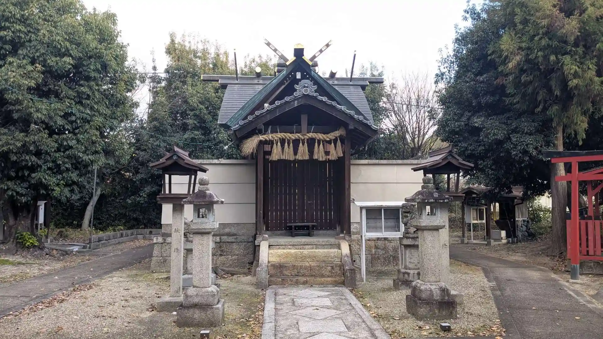江戸時代に淀藩二代藩主永井尚政が円蔵院の鎮守として創建したことが始まり。新田駅の南にあります。無人の神社で御朱印などはありませんが手水からは水が出ていました。