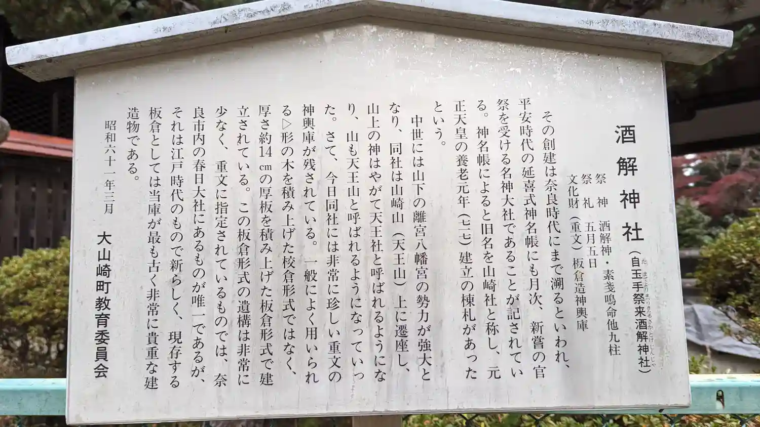 天王山の酒解神社。