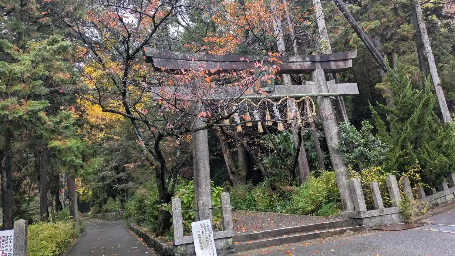 サントリー山崎蒸溜所の見学受付の前の道をそのまま北進すると天王山を背に鎮座される社です。拝殿の中に…