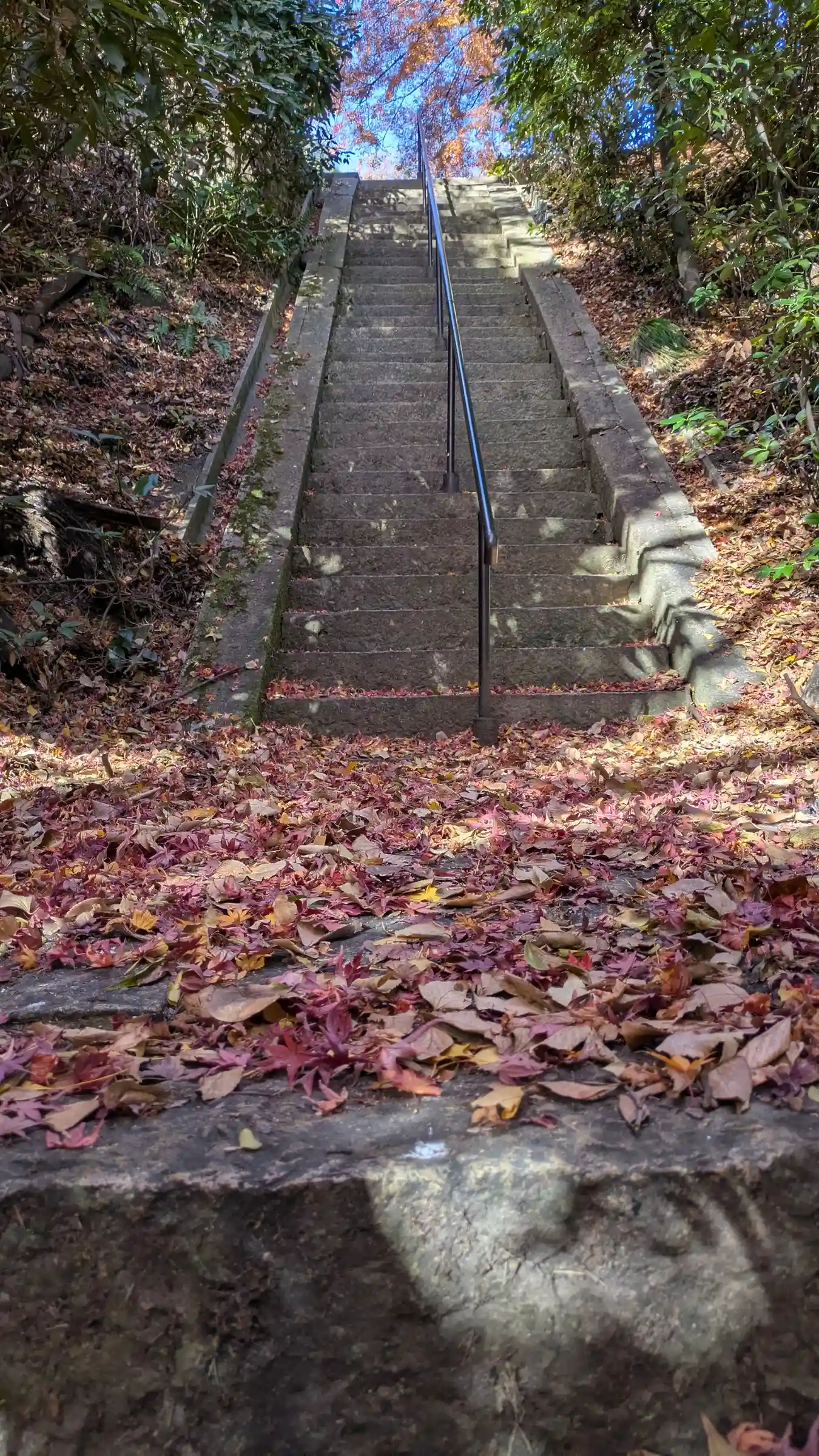 小倉神社さんから戻る途中。公園に自転車停めて急な階段を登る…