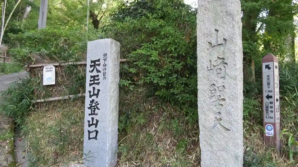 天王山登山口と山崎聖天石標
