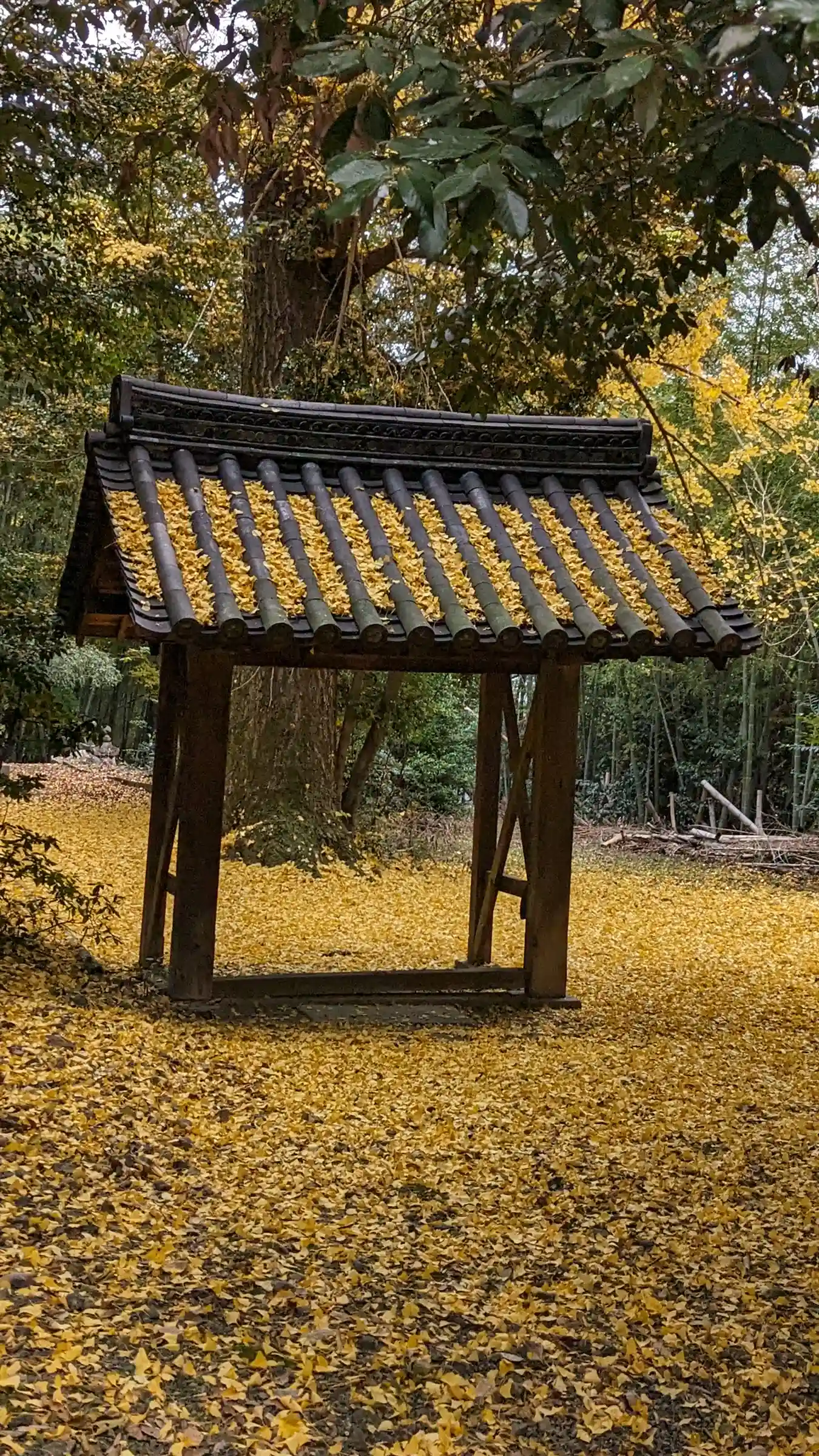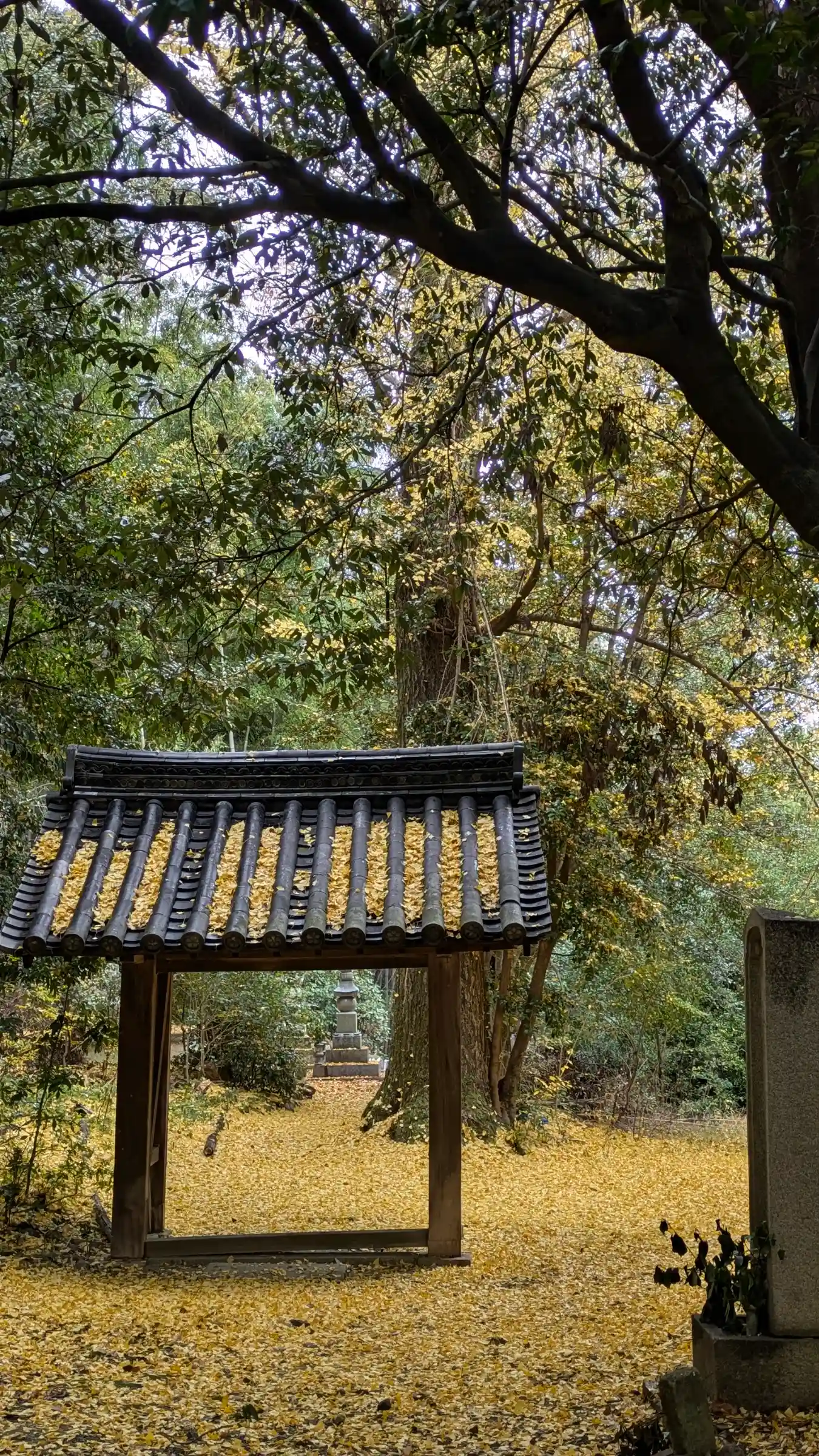歴代墓所。こちらももう少し散りだすと黄金の絨毯に