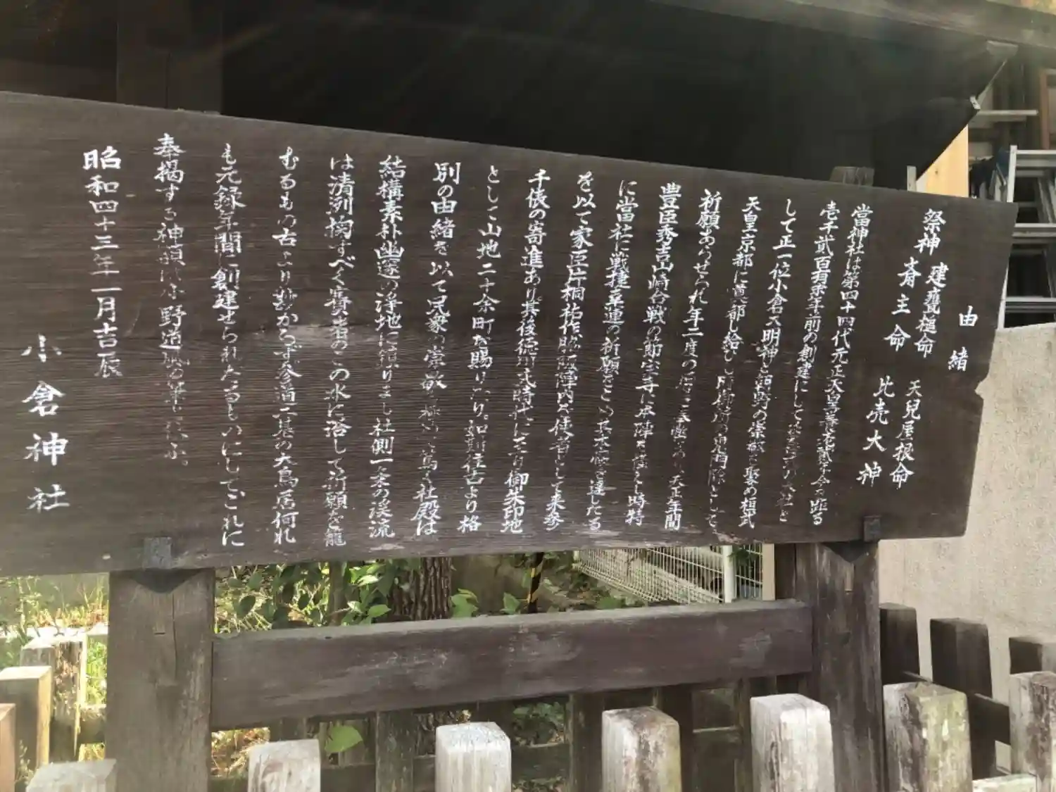 | ご由緒 | 当社は奈良時代の元正天皇の養老二年(718)に創建。桓武天皇の平安遷都(794)に際して御所の鬼門除けとして祈願され、文徳天皇の嘉祥三年(850)神階最高位を賜り、以来「正一位小倉大明神」と号したのです。後に醍醐天皇の崇敬きわめて篤く、延喜の制により式内名神大社に列しました。