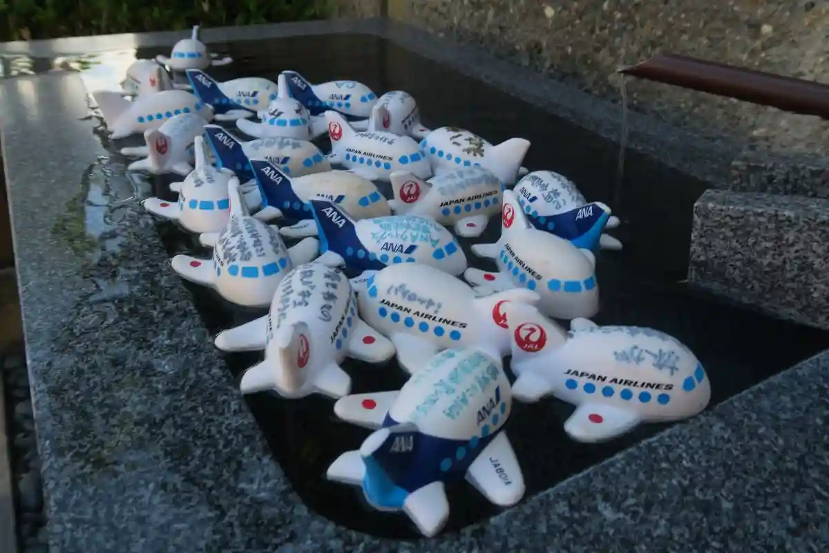 飛行機が浮かぶ手水もちょっと暑そうかも…