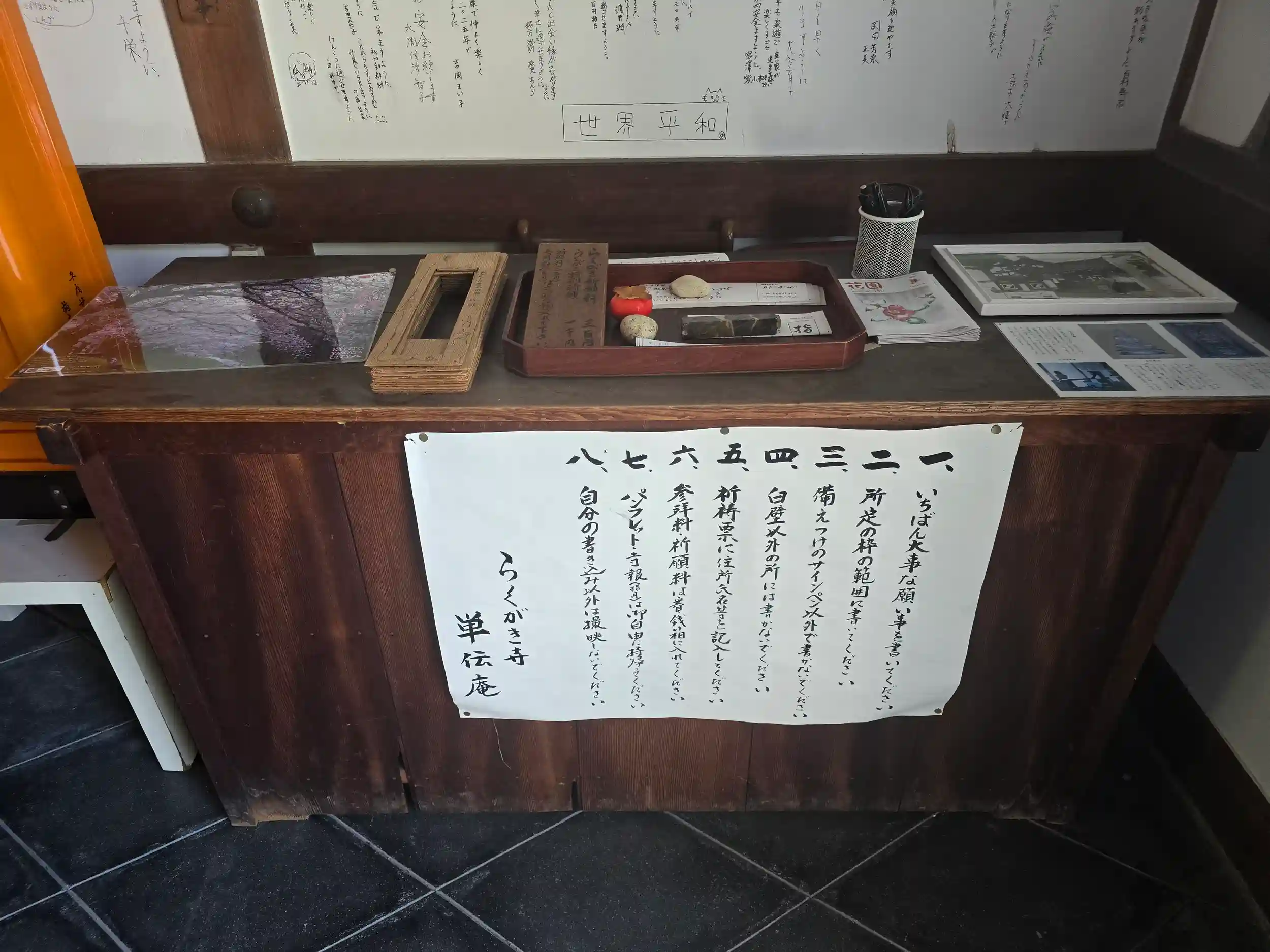 落書き寺として有名で、落書きの出来る大黒堂に入らせて頂くと、白い壁に思い思いの願い事が書かれていました。