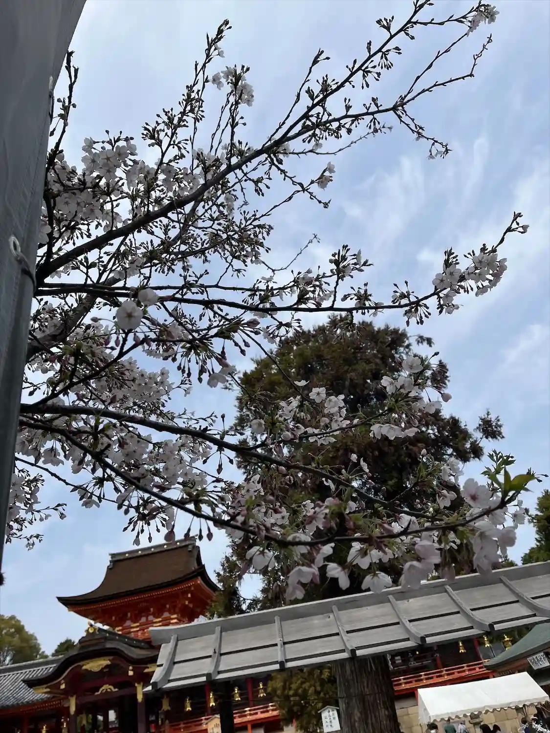 桜は見頃になり、境内は人で溢れかえっています。