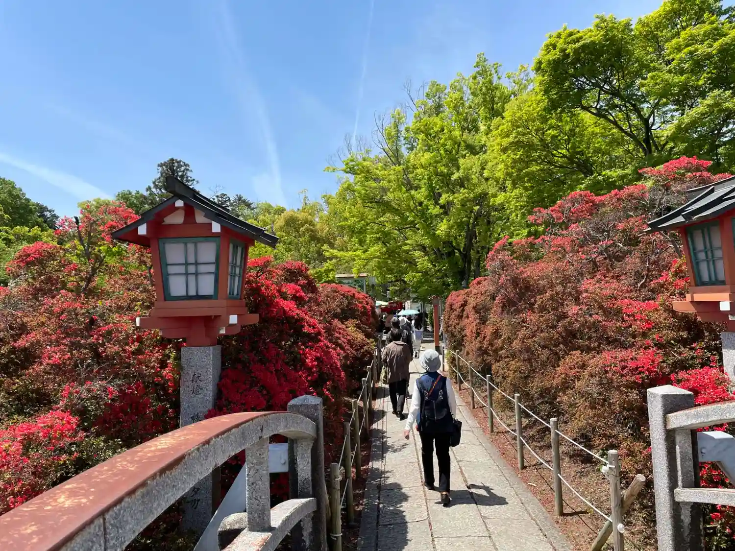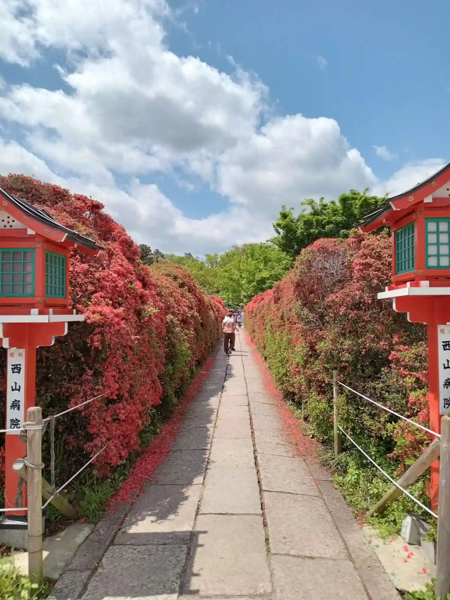 長岡天満宮の春の名物、キリシマツツジの参道が今年も満開を迎えました。
