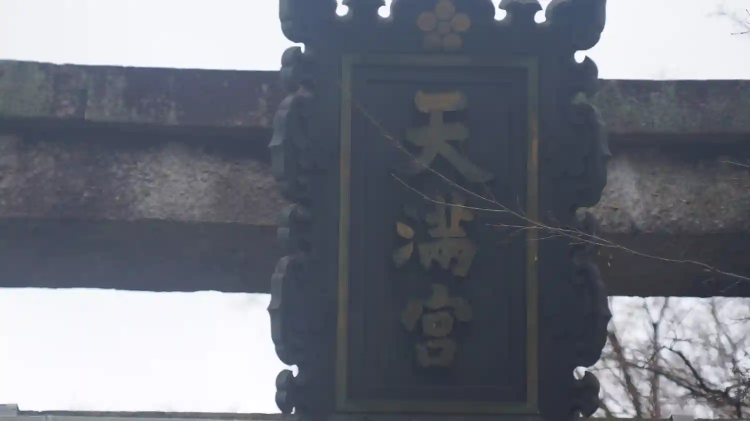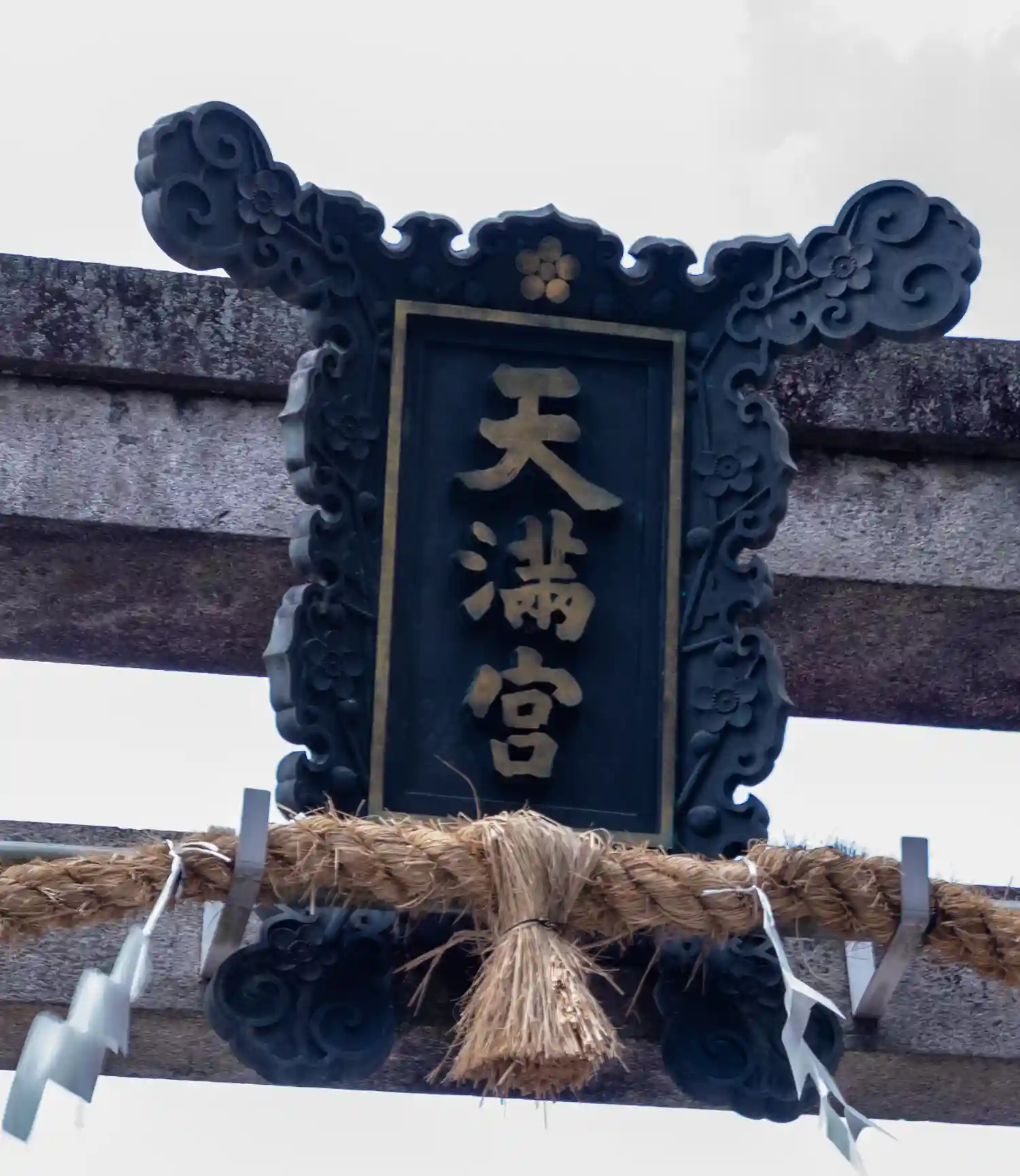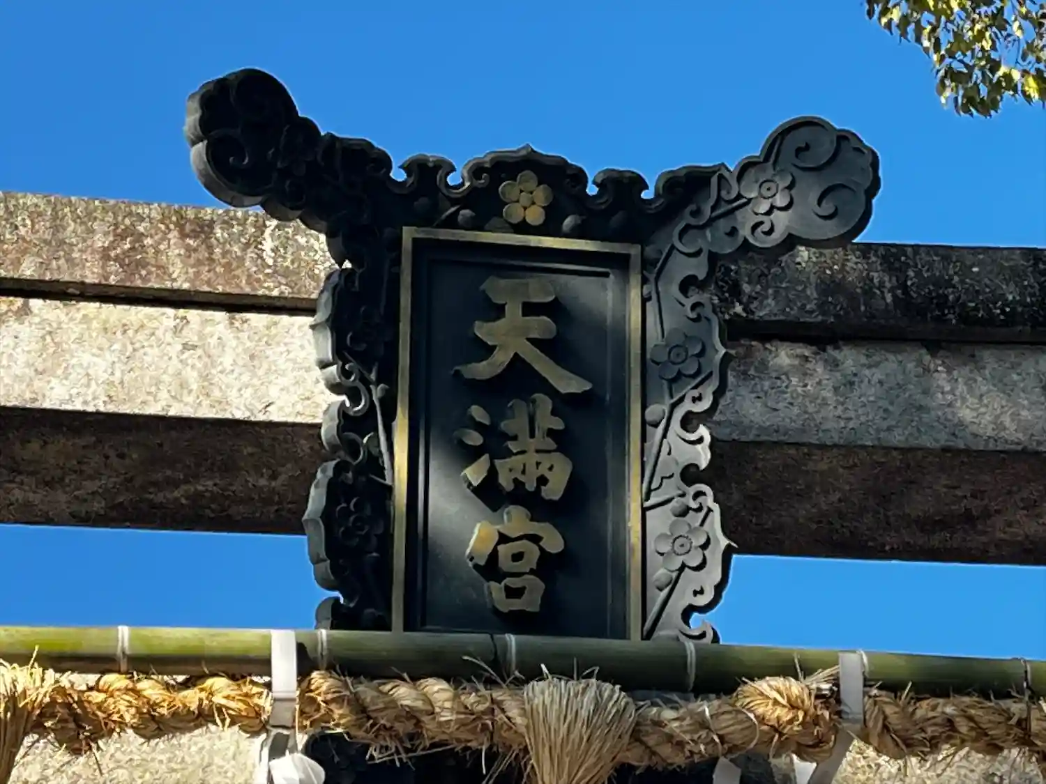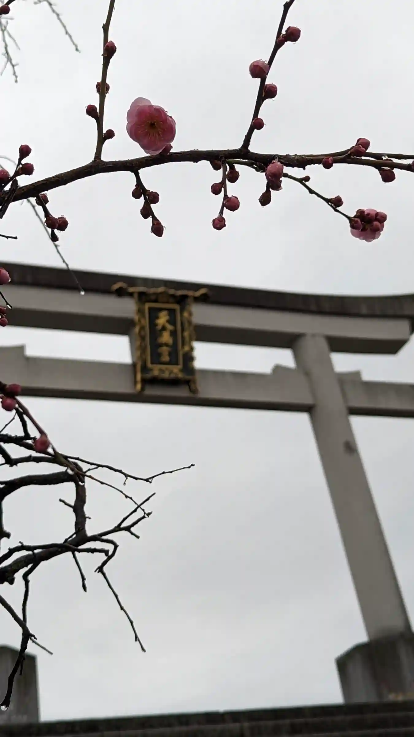 鳥居 右支柱にある梅の紋様
