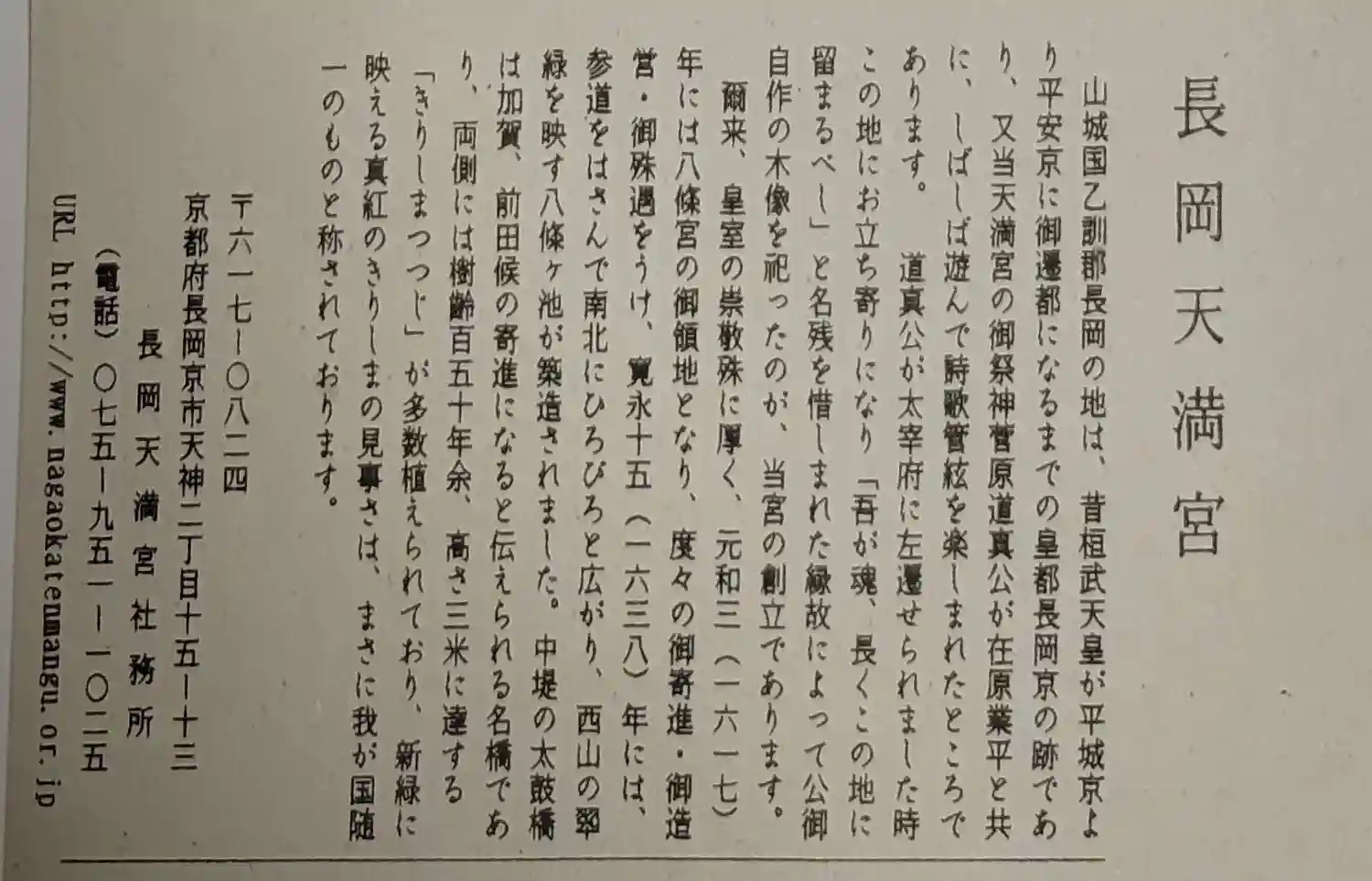 菅原道真御祭神「長岡天満宮」