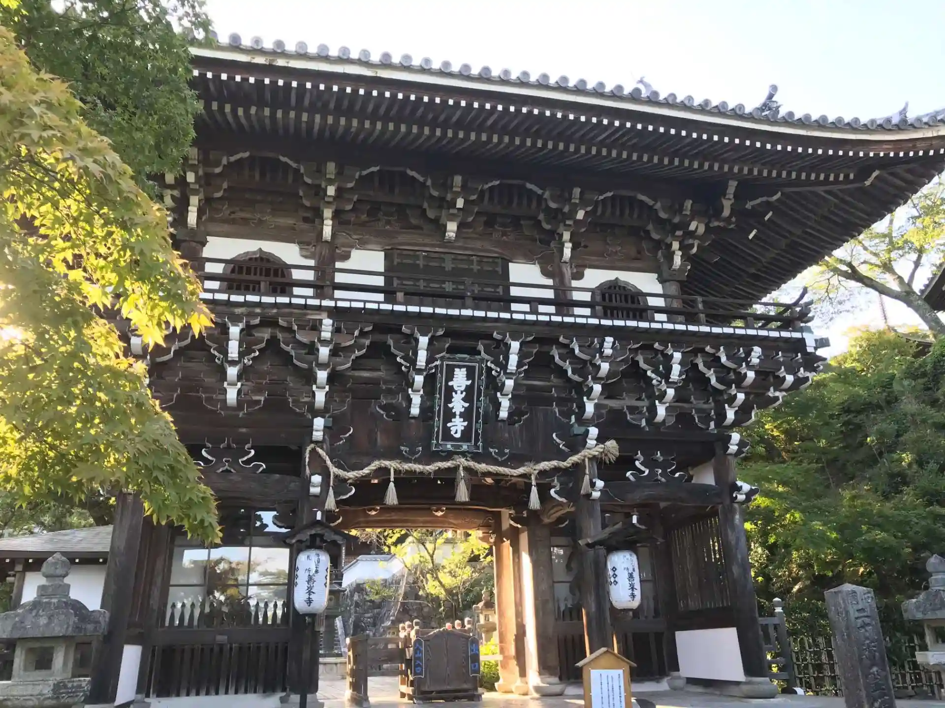 阪急バスで参拝すると階段登りがあるが、車だと駐車場が山門脇にあるので楽である。