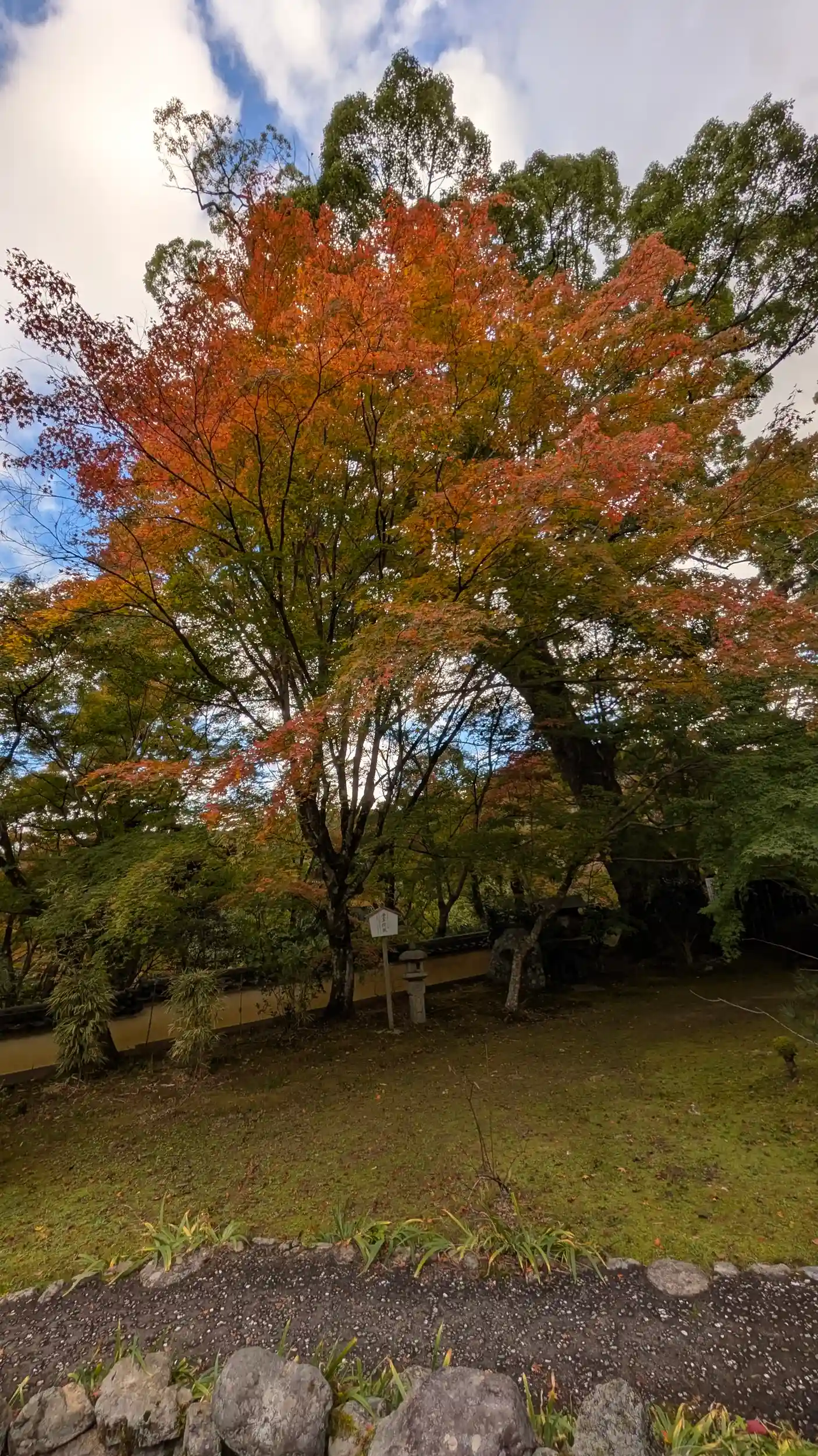善峯寺から十輪寺へ。バスにしようかなと思いましたが到着時間が歩いたほうが早かったので徒歩移動。山門周りは緑でしたが庫裏前から境内に目をやると業平楓がいい感じに色づいていました🤗十月桜も咲いて良い感じ。境内貸切状態でしばし紅葉を眺めてまいりました😊