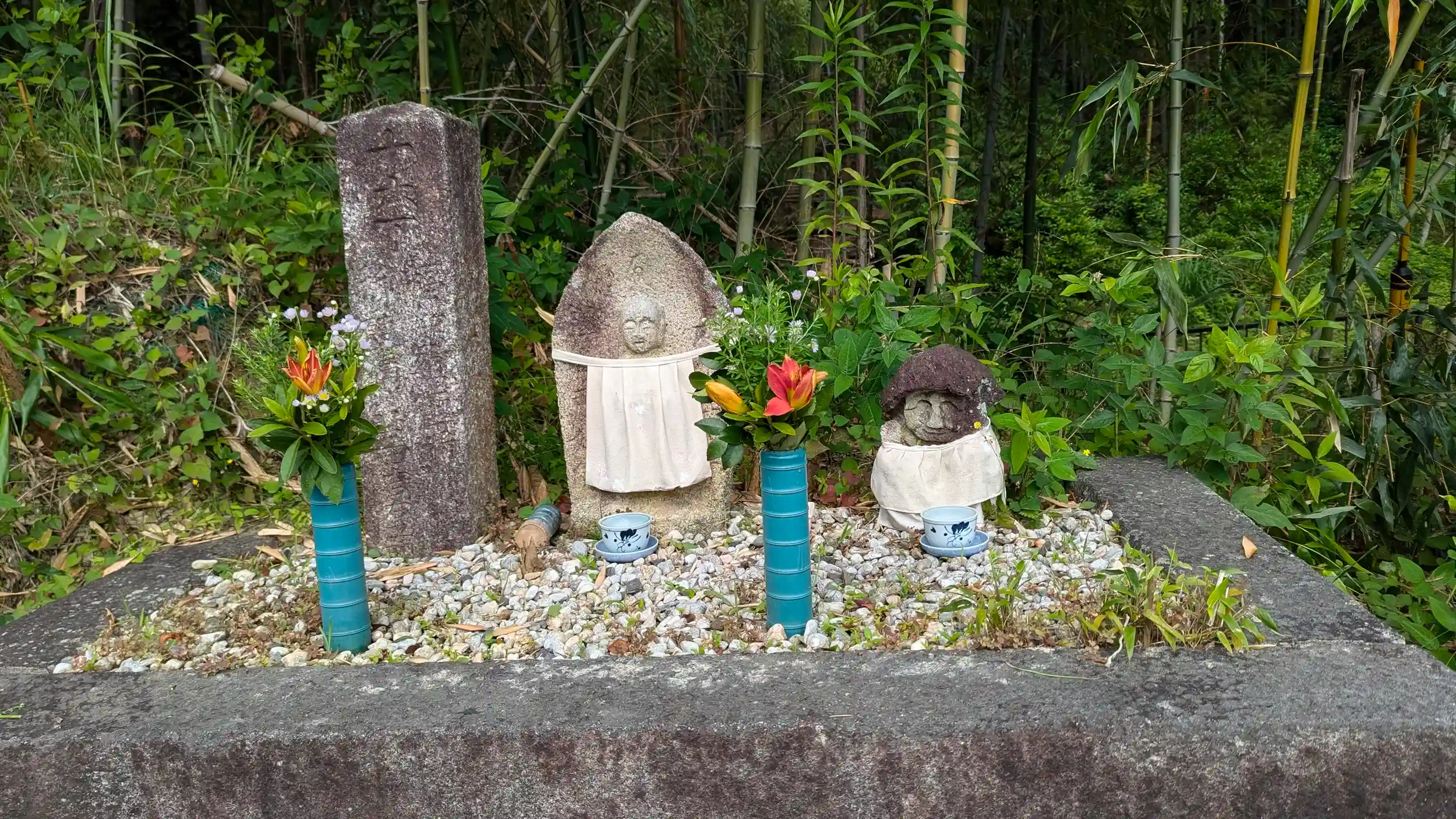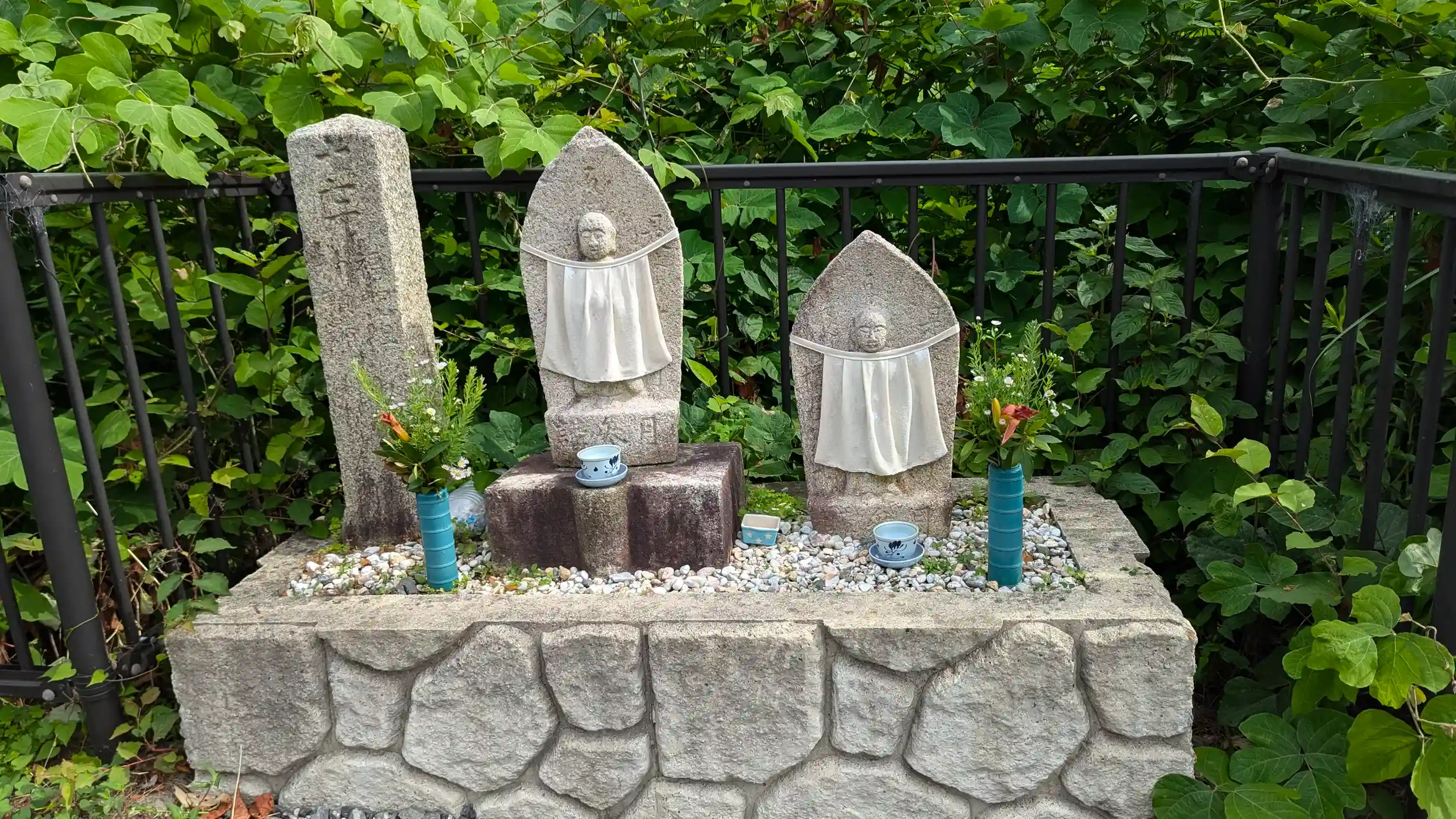 柳谷観音楊谷寺・あじさいウィーク。ギリギリ間に合いました😅バスで奥海印寺まで行き、ちょっと戻って十九丁の案内地蔵様に挨拶をしてから参道スタート。徒歩で山道登っていくときはお地蔵さん探しながら進むのがおすすめです。車で参拝する方は探さないように。路駐すると大迷惑下手すれば大事故招きかねないので😱ちなみに十五丁の案内地蔵様は京都縦貫自動車道建設の際に十九丁に移されたようです(それまでは十八丁しかなかった)。