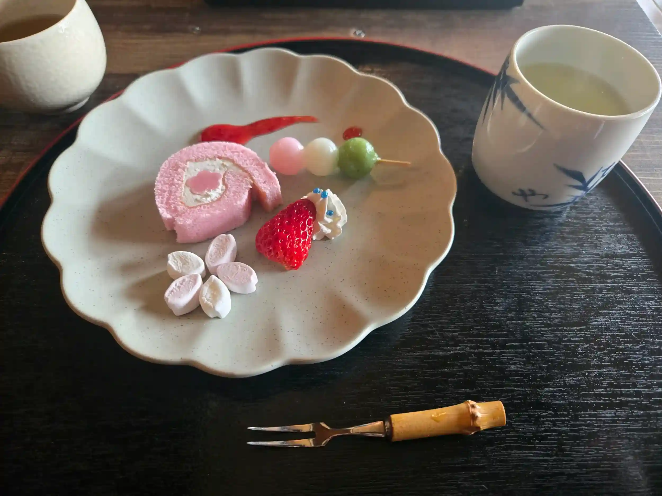 お昼におうどんと甘味をいただきました😋