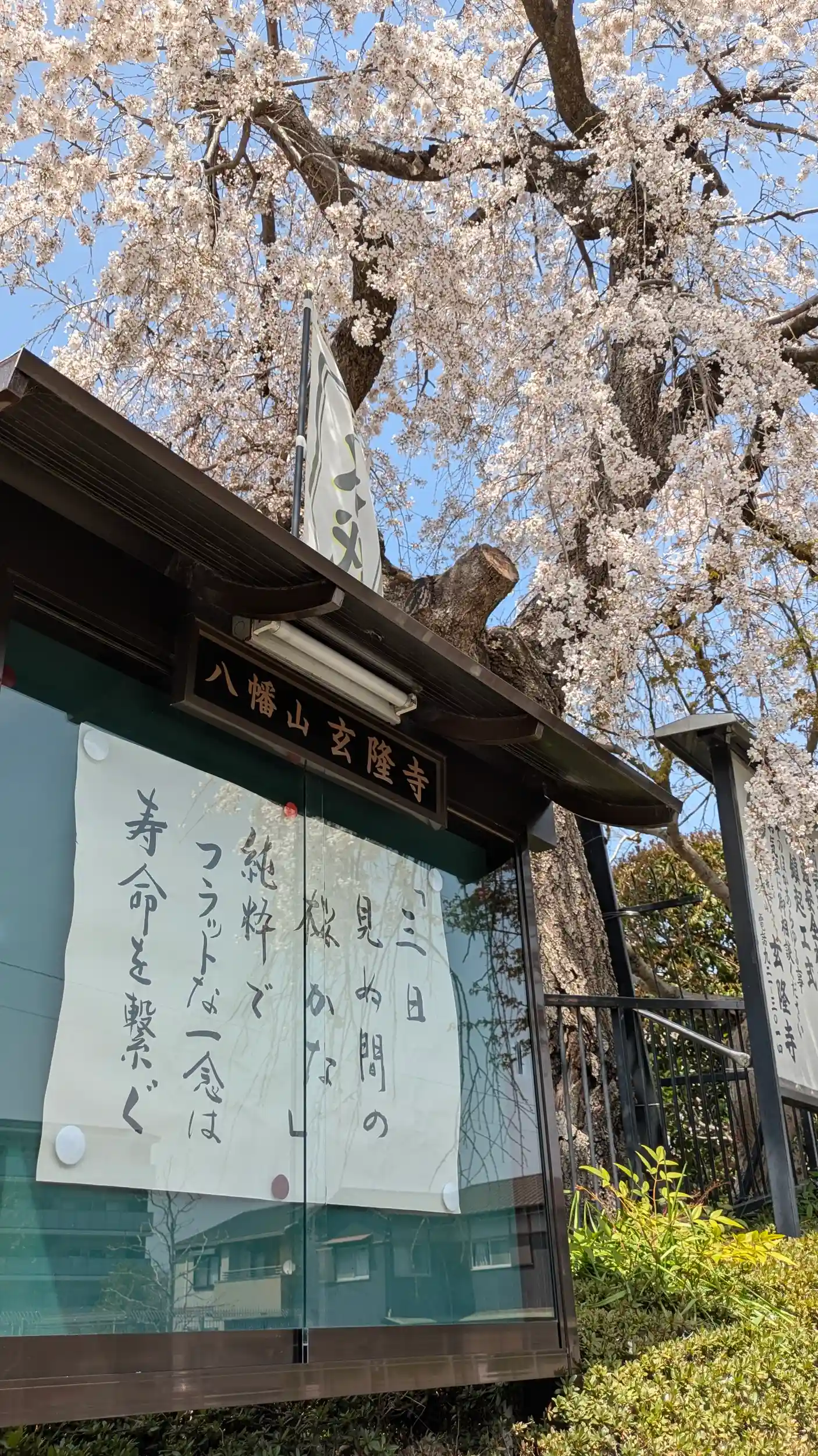 阪急東向日駅近くにまで来るときれいな枝垂れ桜にお題目の幟。何人か写真撮っている人がいるぐらいなかなか良い枝垂れでした🤗境内はきれいにされており里桜もあり、新しめの本堂がありました。本堂右手が庫裏(寺務所)のようなのでインターホンを。お上人居られたので御首題いただけるかお伺いすると「いいですよ」と快諾していただけました😊御首題拝受後にお寺のことをお伺いすると創建は新しく、戦後昭和20年代とのこと。詳細はわからないようでした😅