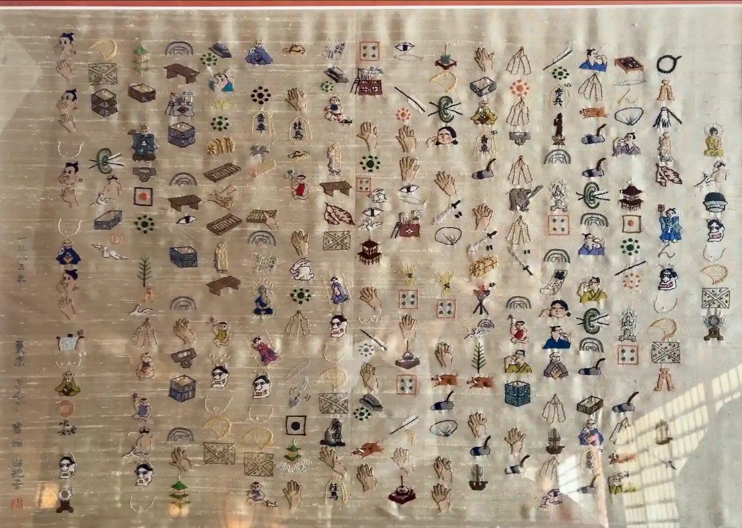 こちらは信者さんお手縫いの刺繍絵心経。細かいお仕事に感動しました。