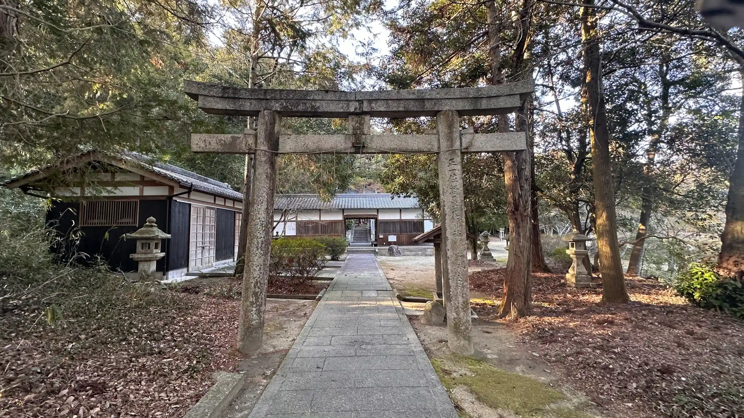延喜式式内社。佐牙神社とともに酒造りに縁のある神社です、河内国の酒造りを業とする中臣酒屋連の一族が来往して、酒造りを伝え、祖神を祭ったものともいわれる。 境内横には運動公園があり紅葉の季節はとてもにぎわっている