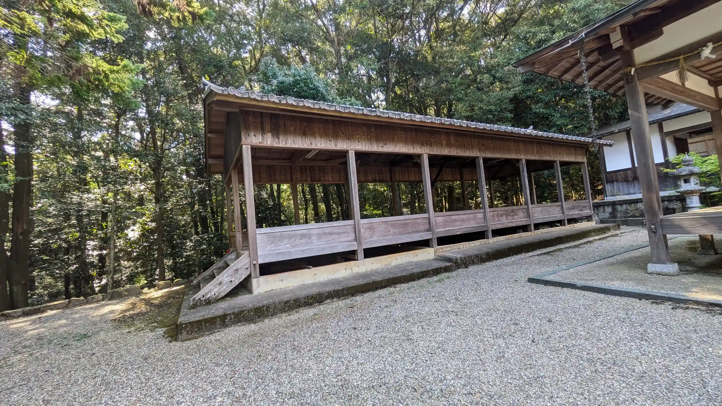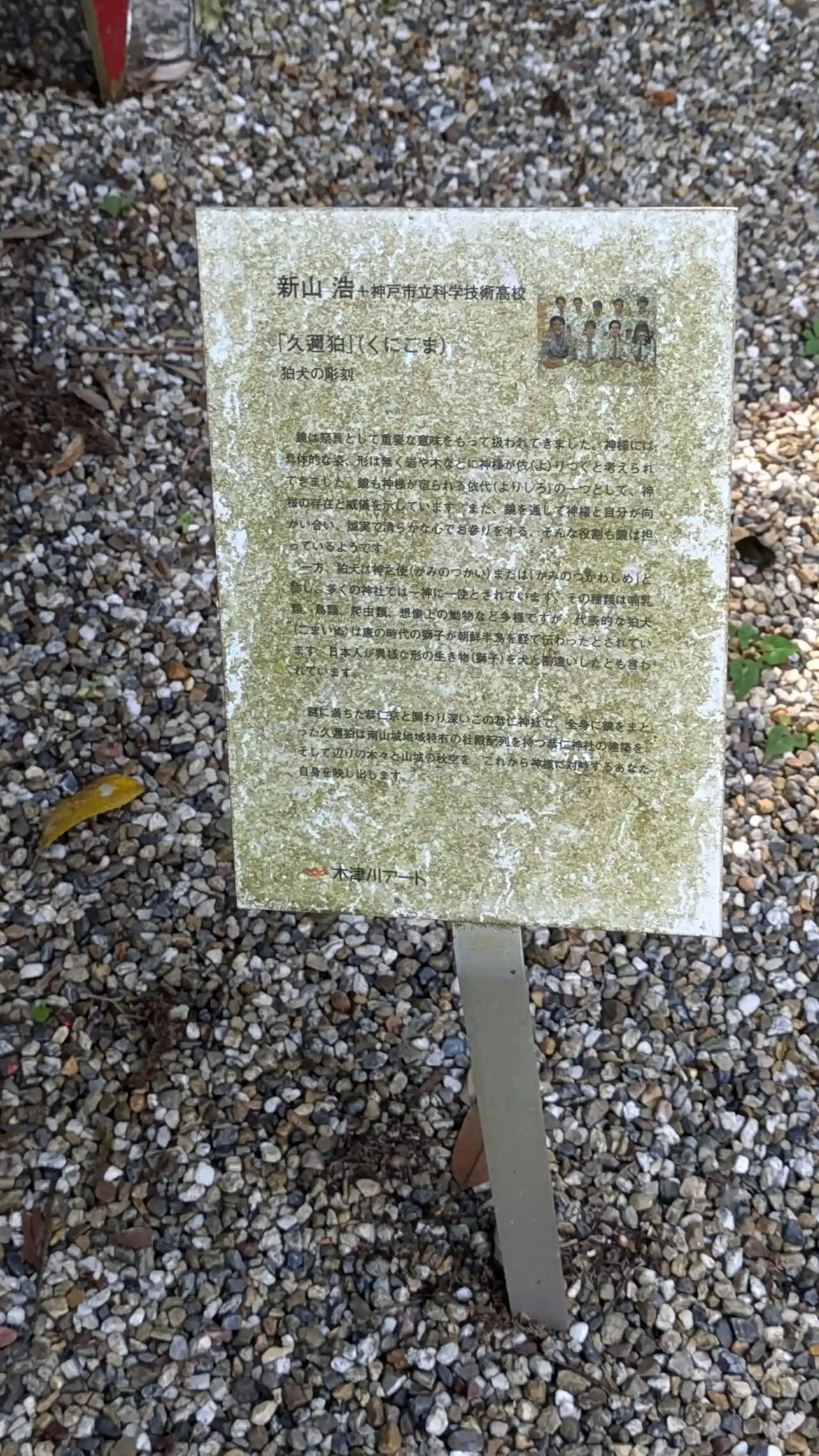 加茂神社からさらに西へ行き、恭仁神社へ。参道の赤の鳥居が倒壊防止のロープで固定されており痛々しい・・・。境内はわりと広め。まず目に付くのは全身鏡張りの狛犬その名も「久邇狛」だそう😲きれいにされてましたが本殿にブルーシートがかけられていたのが痛々しい・・・。ご不在ゆえ御朱印はいただけず。