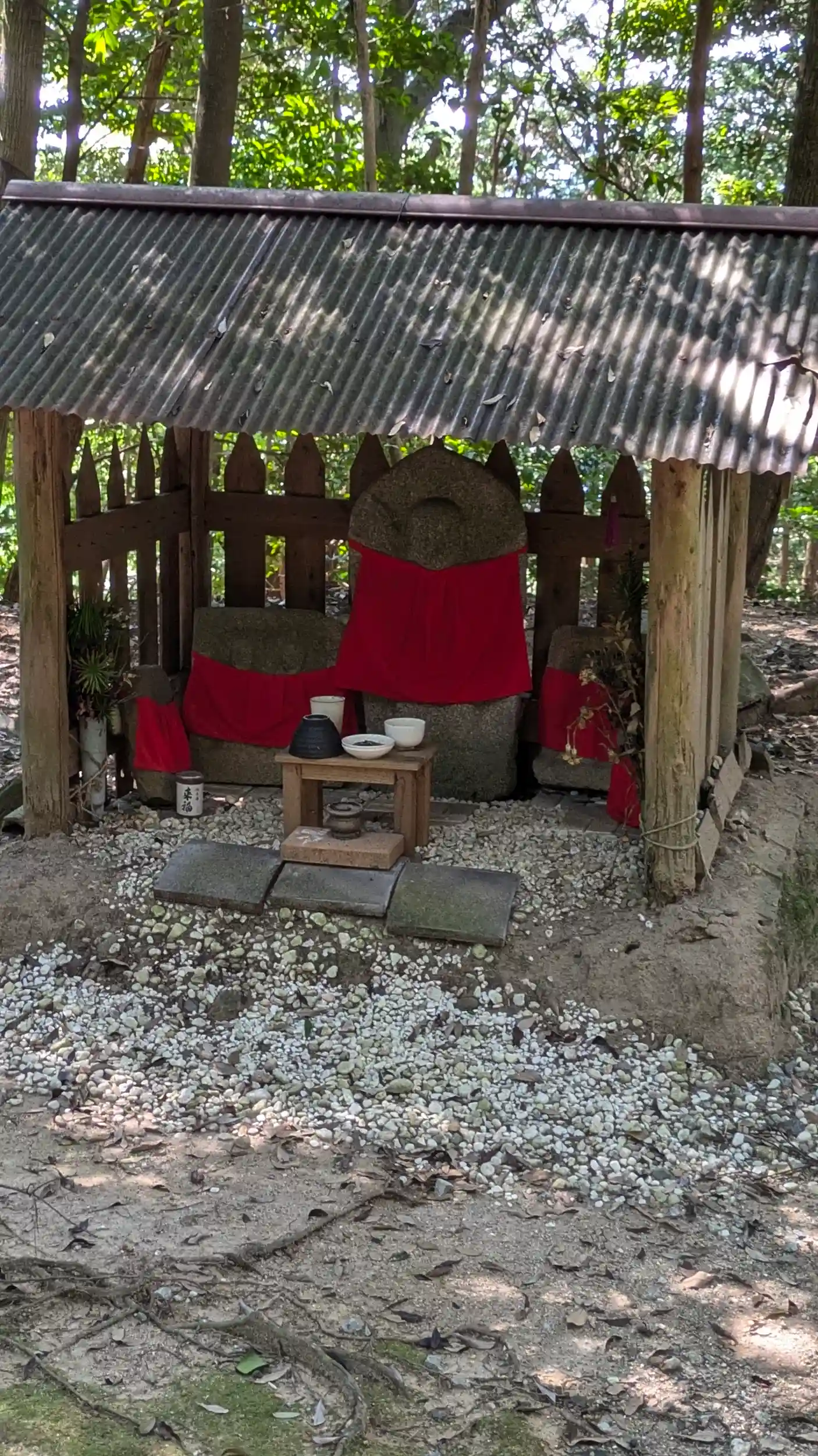 googleMapに載っていて本照寺の参道途中から行けるようなのでマムシに気をつけながらお参り。思ってたよりも参道が広めで、すぐに到着。境内手前でロープが張られていたので立入禁止なのかなぁと思いましたがどうやら「勧請縄」というこの辺り(南山城、奈良北東部、三重伊賀地方など)で呪物を貼った注連縄を張る風習があるのだとか😲まあかなり垂れ下がっているので張られてから幾分経過してるんだろうなぁ・・・。境内へ進むと本堂は最近修繕されたようできれいでした。