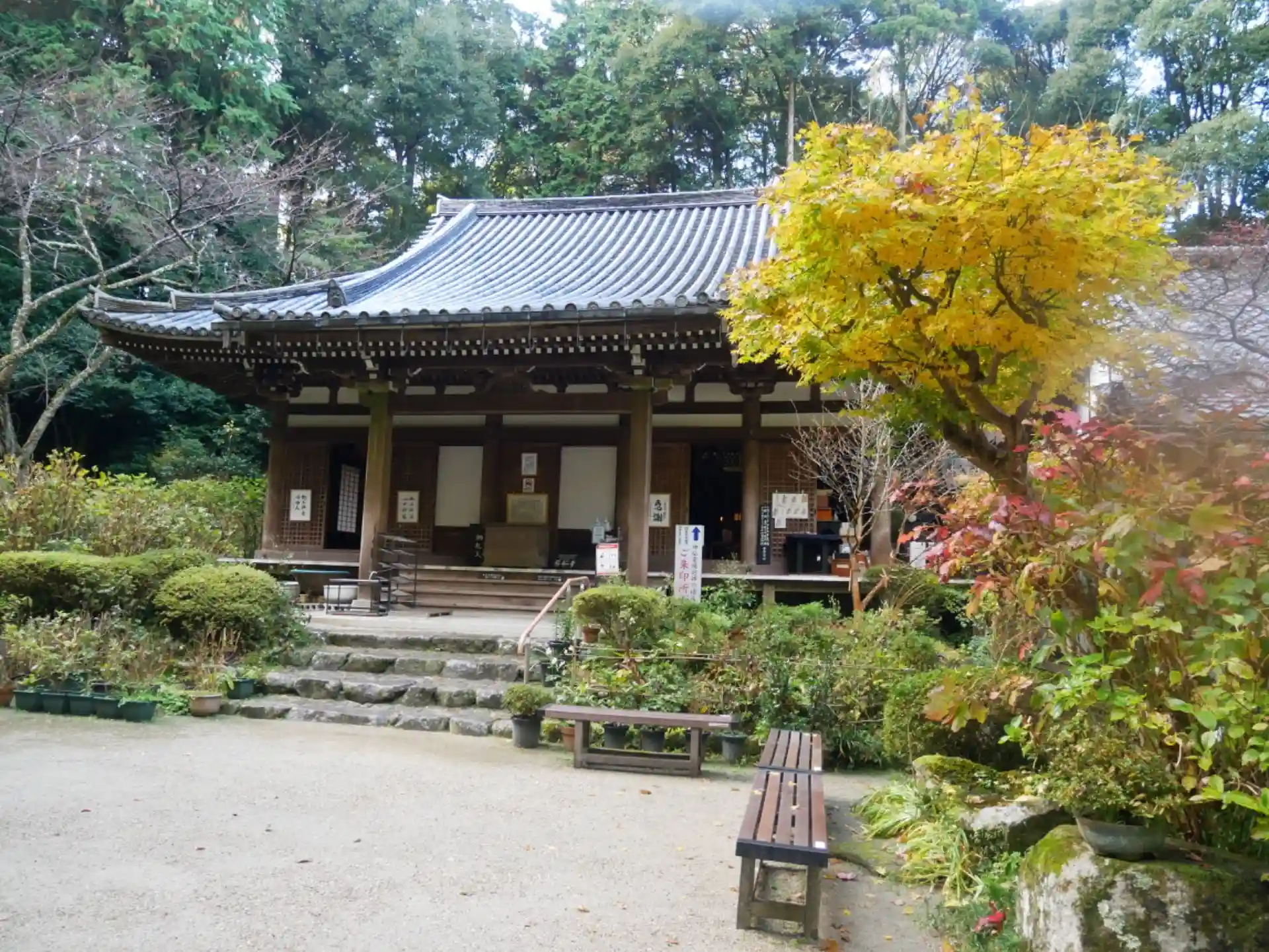 高尾山こうゆうざん報恩院岩船寺、関西花の寺、神仏霊場49番。真言律宗。京都と奈良の間木津川市当尾(とうの)の地。浄瑠璃寺の近くでこの辺りは磨崖仏などもたくさん見られる。聖武天皇が行基菩薩に阿弥陀堂を建立させ、後に弘法大師と智泉大師が伝法灌頂を修して灌頂堂として報恩院を建立したのがはじまり。ご本尊の阿弥陀如来坐像は946年作とかかれている。紫陽花の寺。晩秋に訪れた記録。