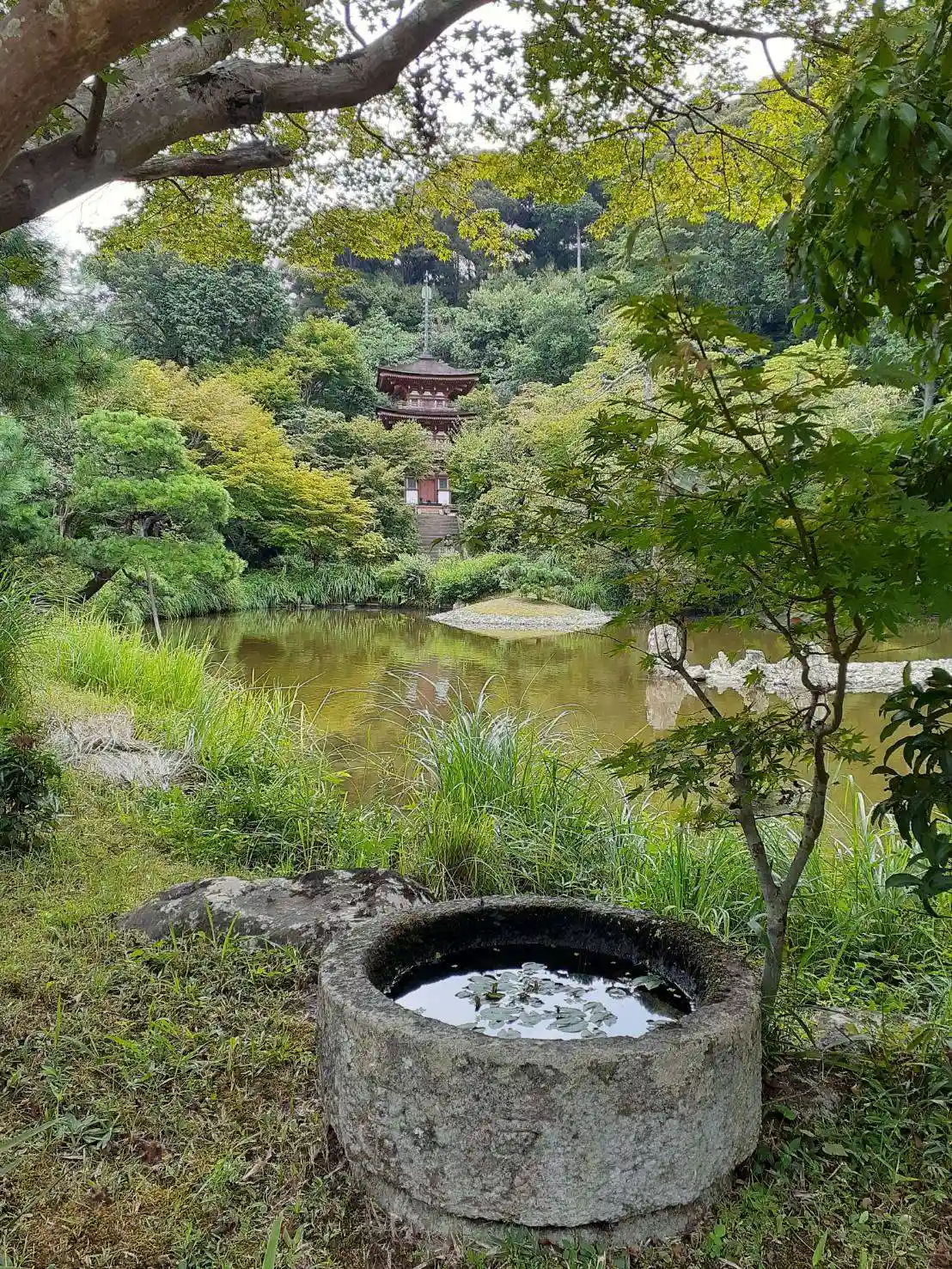 浄瑠璃寺は 梵字の阿字を型取ったとされる宝池を中心に、東に薬師如来坐像を祀る三重塔(東方浄瑠璃浄土)、西に九体阿弥陀如来像を祀る本堂(西方極楽浄土)が配されており、この世とあの世を描き出した美しい造りの寺院です☝️