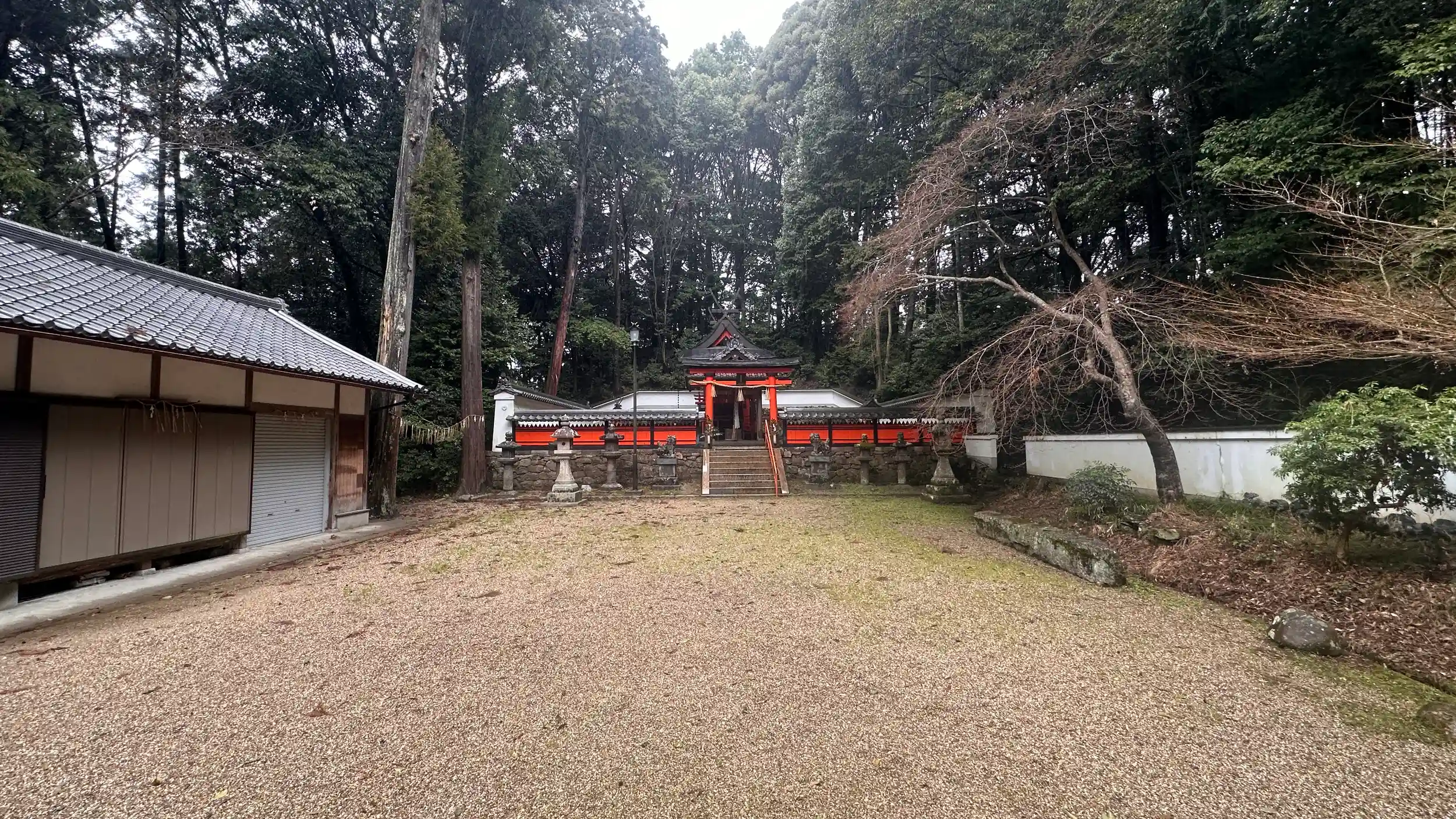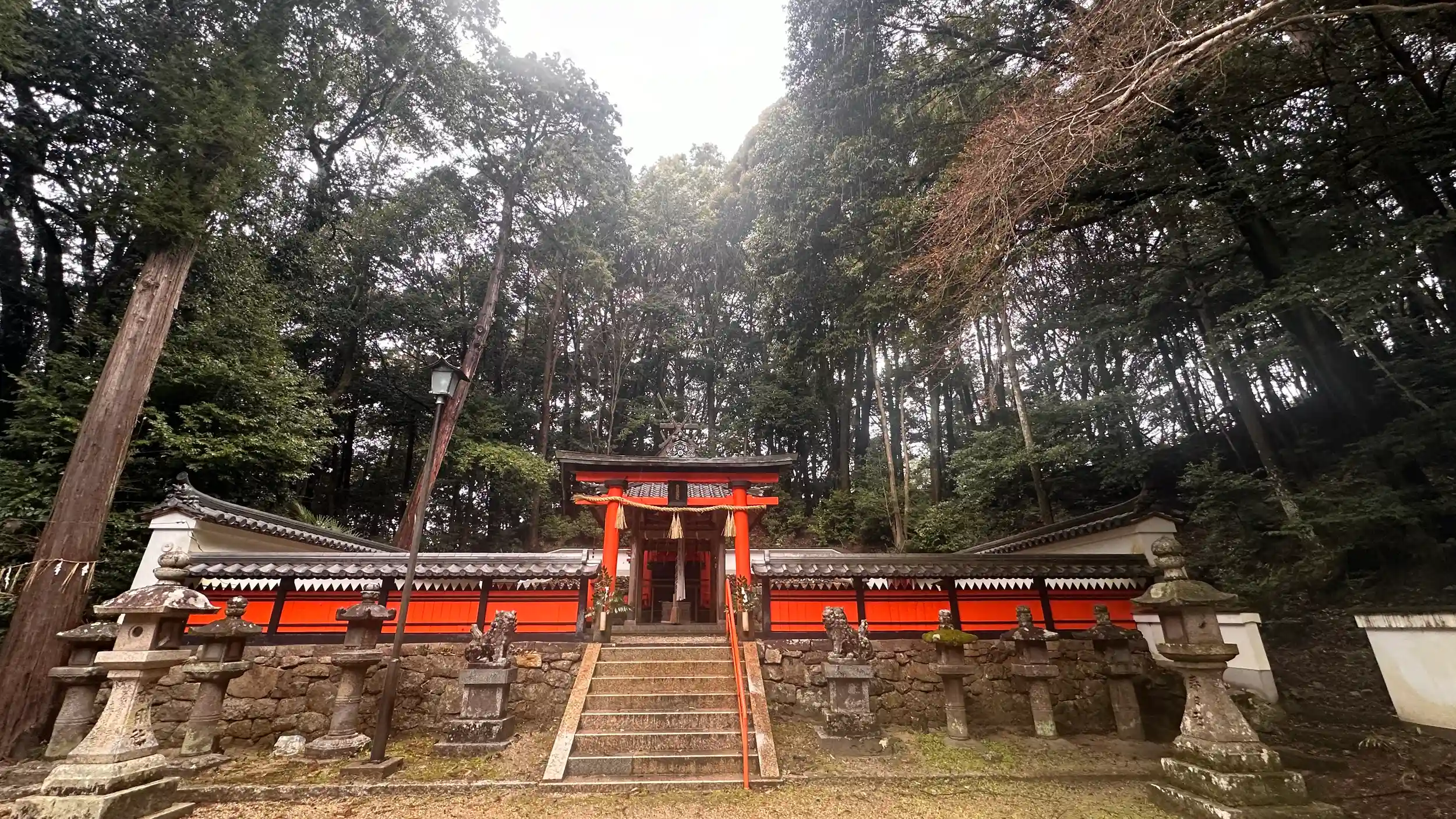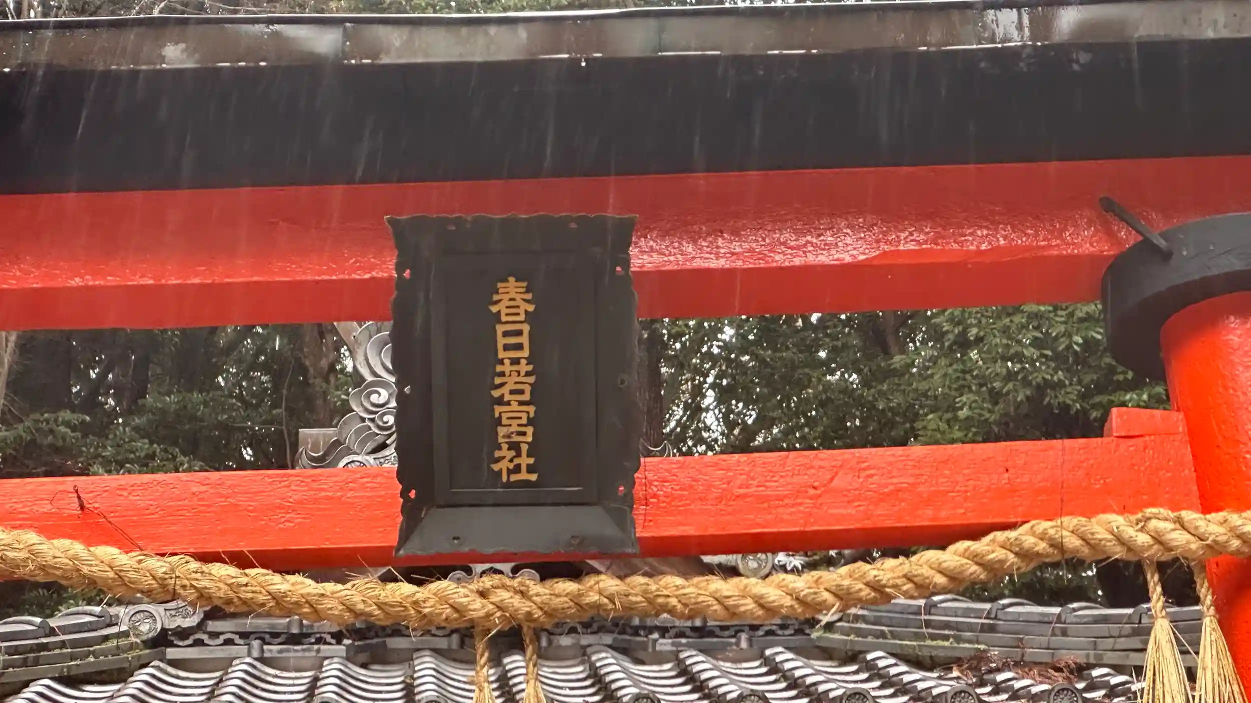 雨の中の朱の本殿、鳥居が冴えます、ご本殿は元禄時代の「春日移し」とされます。春日大社 本社本殿第二殿または第三殿であるとのこと。最近改修されてのでしょうか、本殿、玉垣、塀とてもきれいです。加茂の地は奈良春日大社の神宮司である、奈良興福寺の領地荘園で氏神は春日大社 以前は中森の地にお祀りされていたものが、1712年の大洪水で現在地へ移されました。境内ご由緒書きより