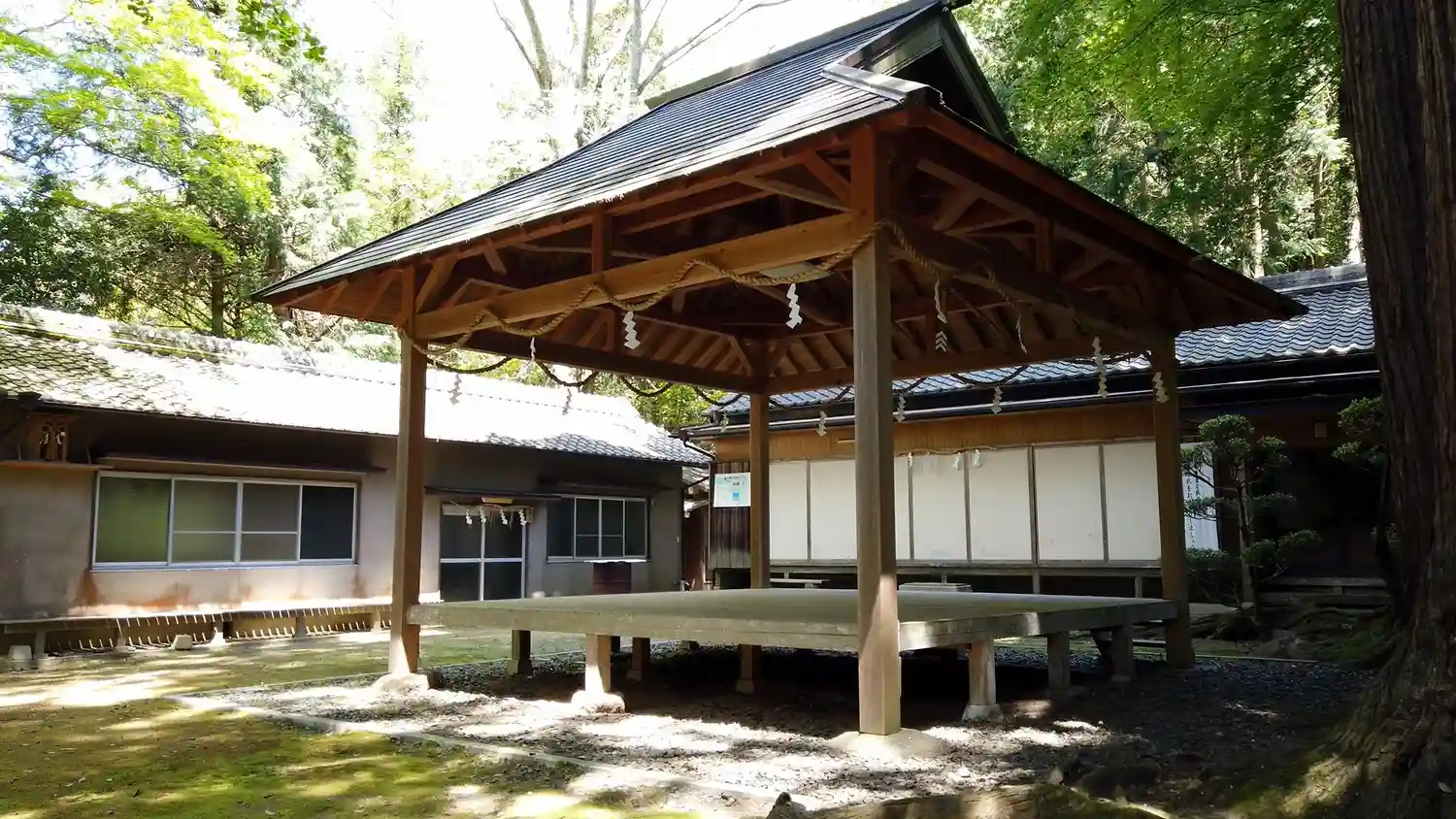 祭神は管原道真公(学問の神)。 末社は八幡神社、手力男神社。毎年10月の例祭の宵宮祭には、大人による翁舞式三番が能舞台で奉納されます。奉献石灯籠は、正徳2年(1712年)のものがいちばん古いとされています。