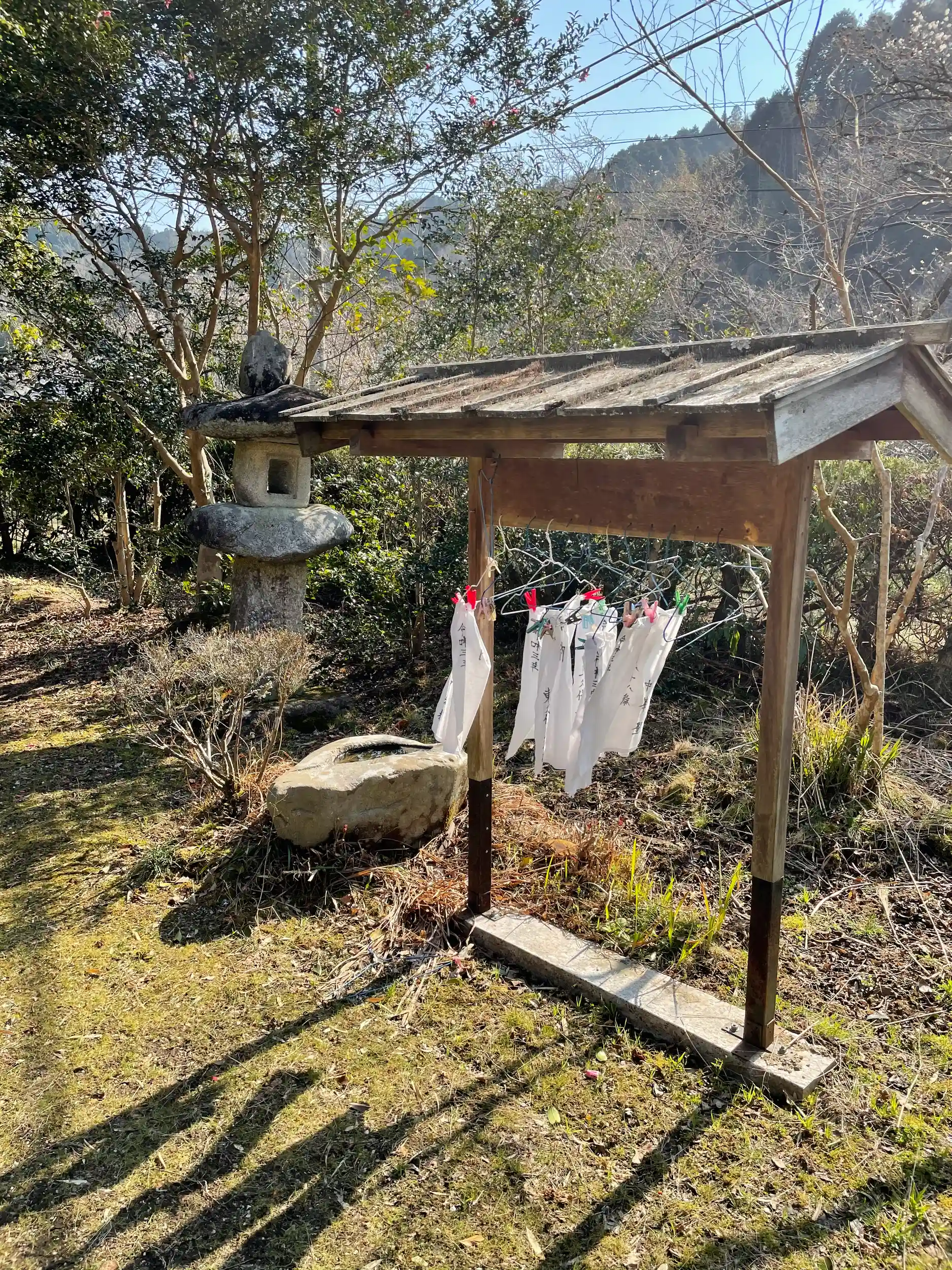 月ヶ瀬梅林に来て、お弁当を食べる場所を探して車を走らせていると、広場を発見!降りてみると何と景色の素晴らしい日当たりの良い休憩所が。そして、隣りに小さな神社があり二重の喜び!蛭子大黒社と書かれていますから蛭子様と大黒様をお祀りされているのでしょうか。神社の隣りに小さなお店がありましたが、本日は閉まっていました。