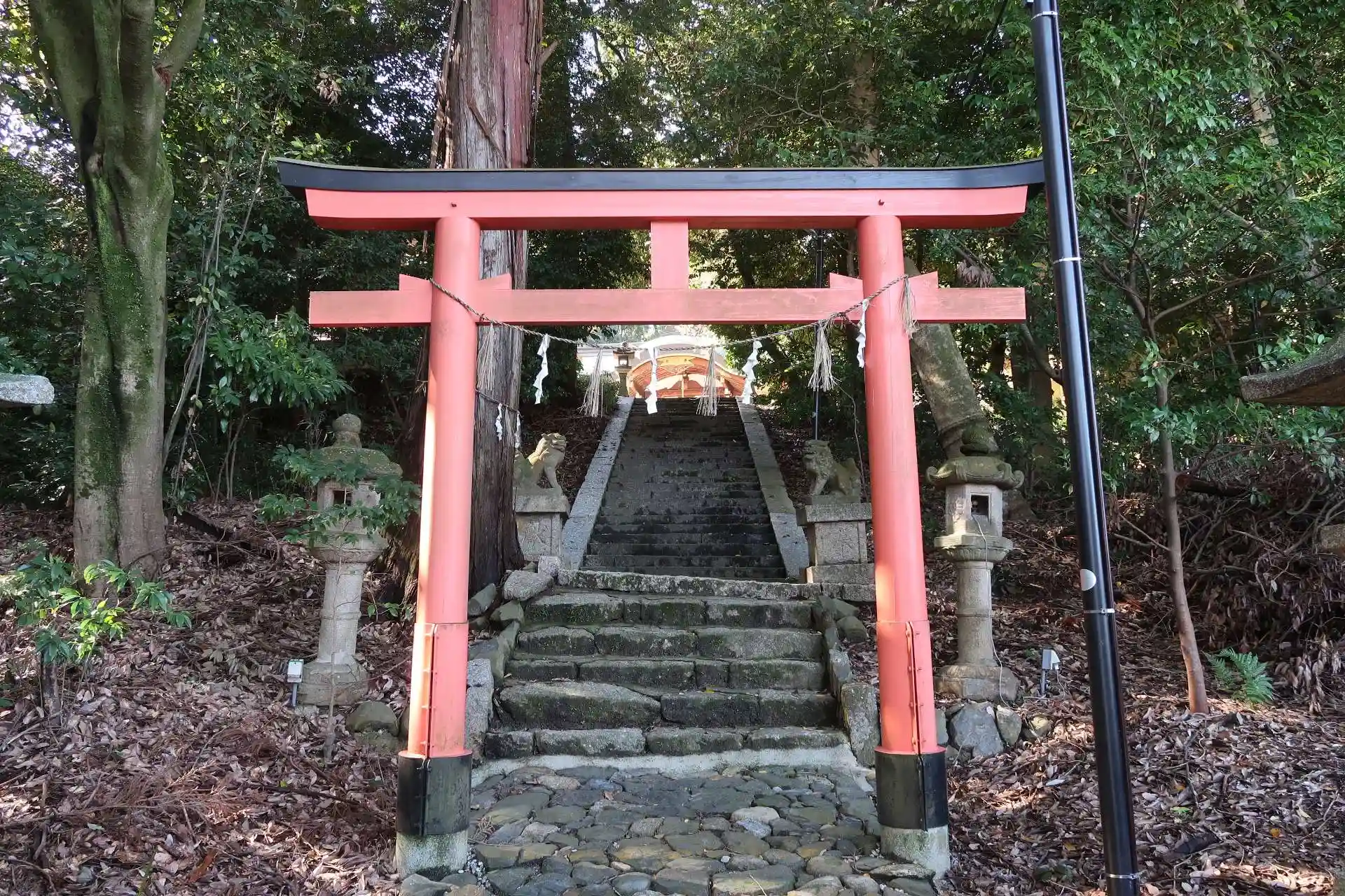 先の十輪寺へ向かう際、交差点角に神社と思われる建屋を見掛けたため、折角ですので帰り道に参拝しました。
