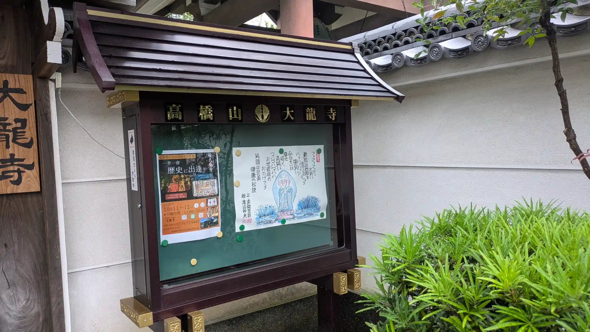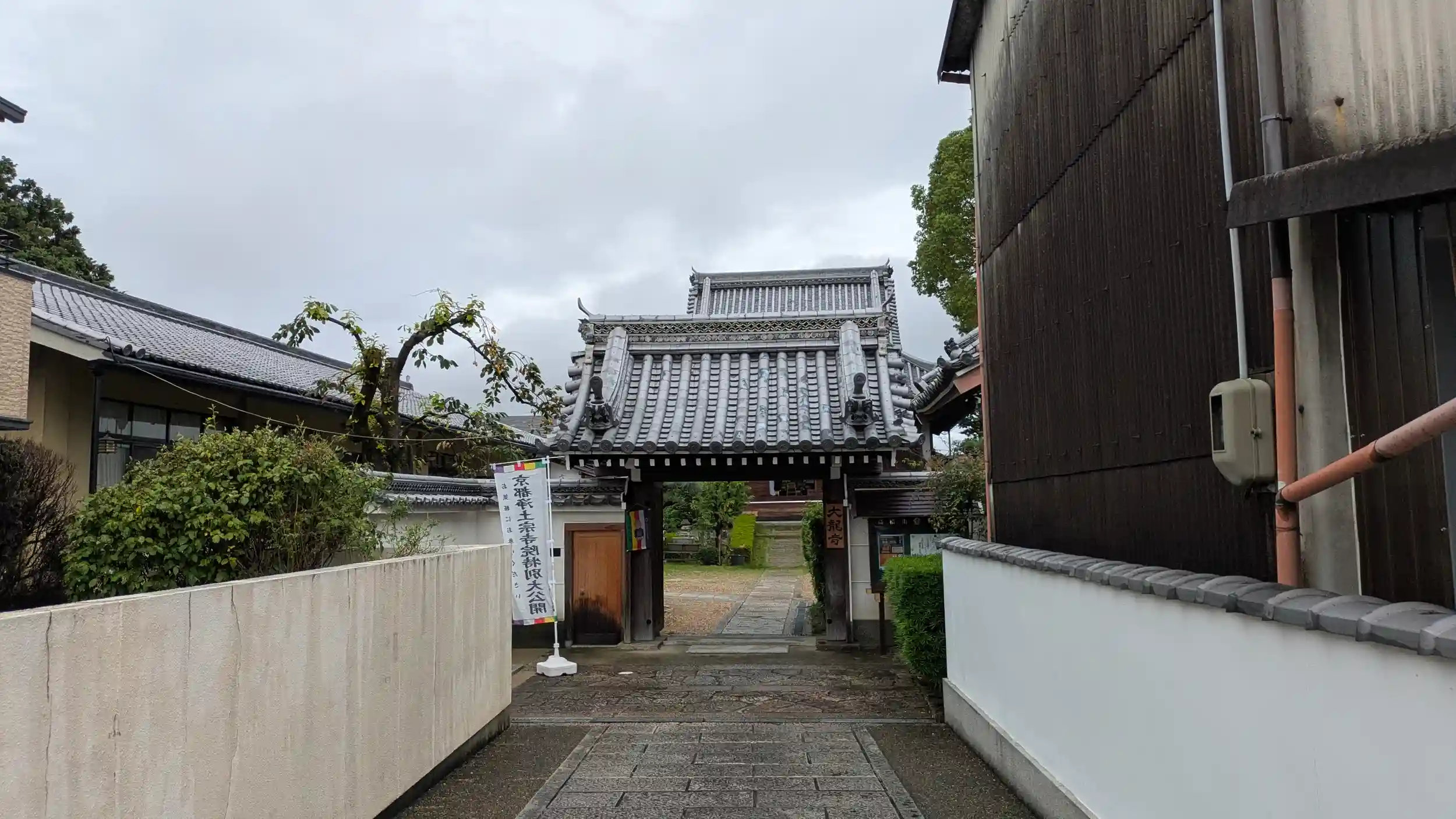 京都浄土宗寺院特別大公開。木津川市木津の大龍寺さんへ。白山宮から川沿いに南へ進むと立派な本堂が見えてきました😊山門へと向かい、境内へ。本堂には先客が一人だけ。まあ時間もギリギリの14時半でしたのでそんなもんかな😅お話によると開門の13時には20人ぐらい来られたそうです😅そしてその頃は土砂降りだったそうで・・・😅遅掛けだったのでじっくり拝観させていただき、ご住職ともお話させていただきました🤗お寺は開放してたくさんの方に集まっていただく場との考えとのことで実に素晴らしい😊お寺はそうあってほしいものです・・・あくまで理想ですがね😥昨今の治安悪化もあり、こちらもお賽銭をやられた経験はおありだそう・・・。いろいろお話をさせていただき有意義な時間を過ごせました🤗気が付けば刻限過ぎており慌ててお暇させていただきました😅