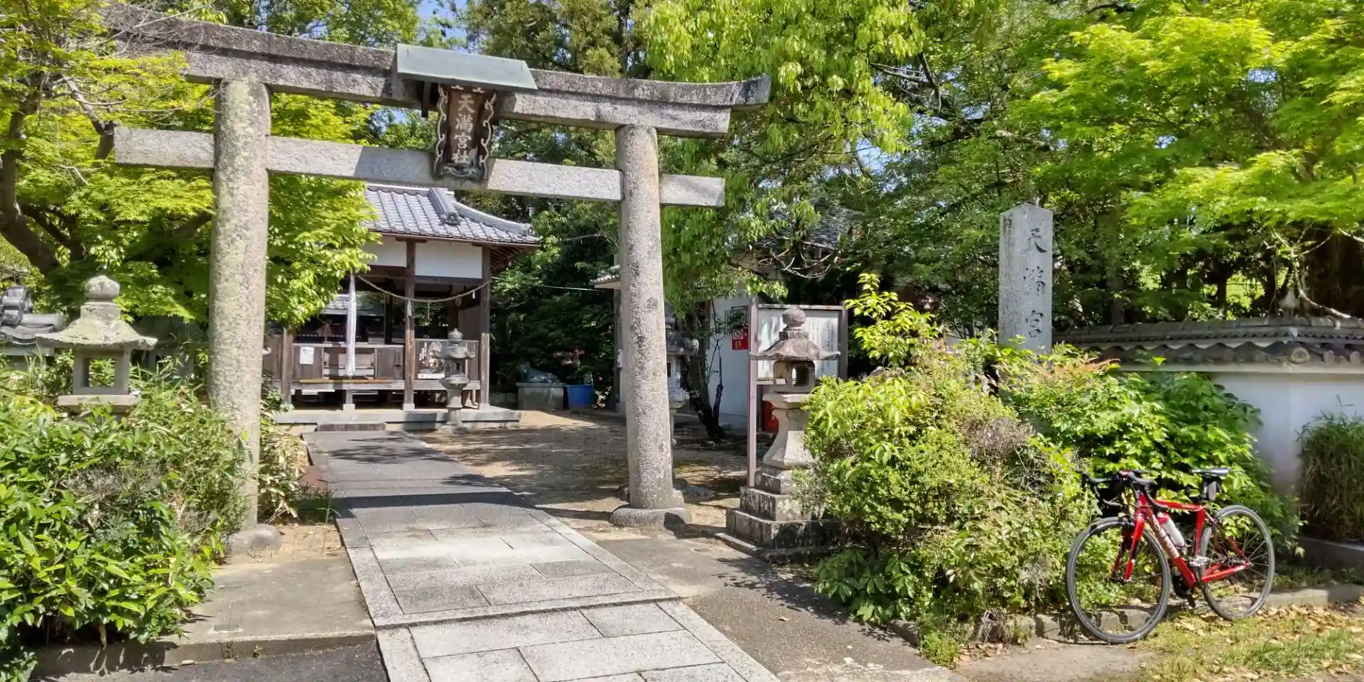 こちらは旧枇杷庄村の産土神とのことです。御祭神に菅原道真公をお祀りされています。御本殿は中門と白塀の奥にあります。白色と朱色が綺麗です!