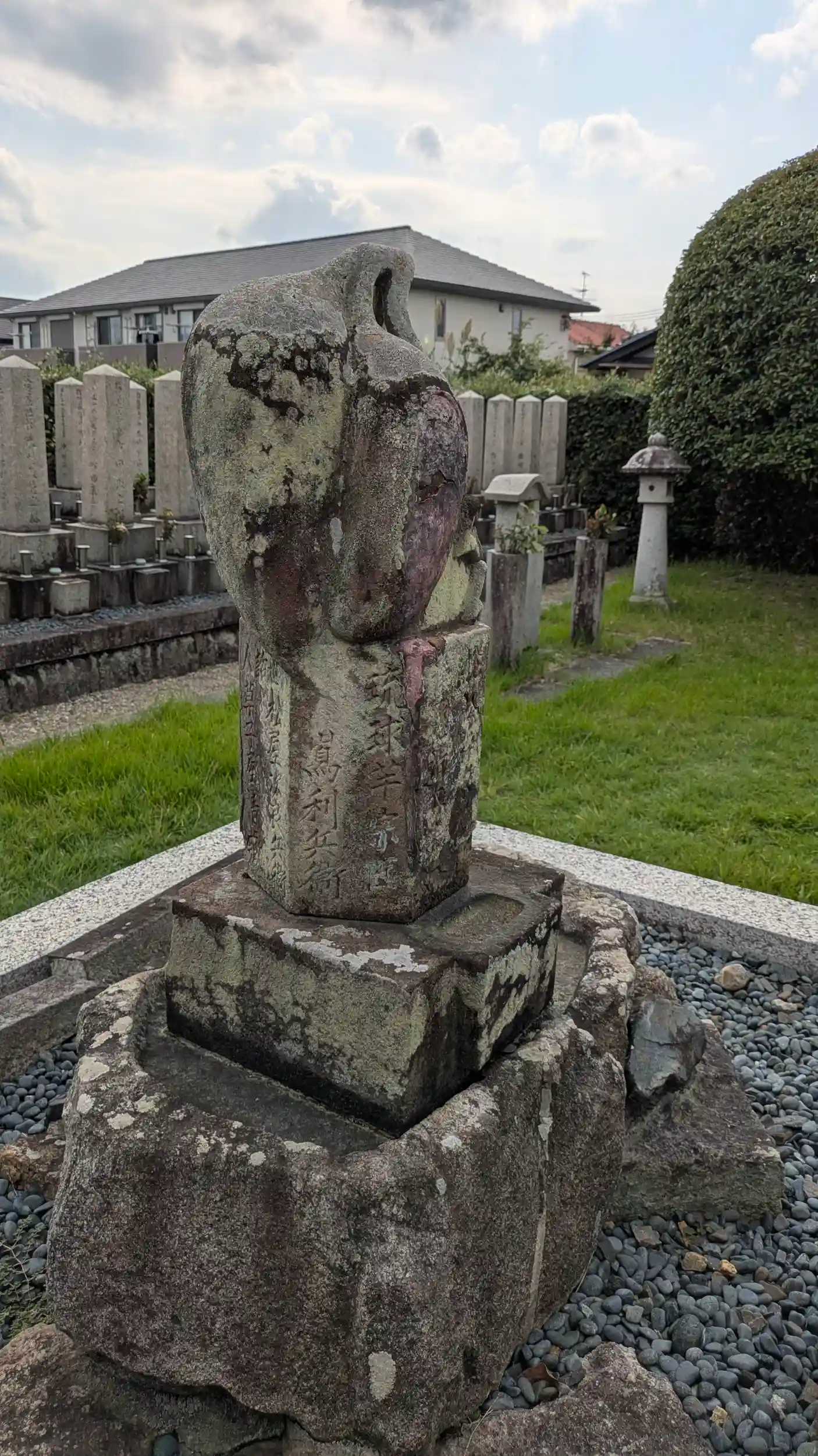 城陽めぐり最終は浄土宗の大蓮寺。本堂は十年ちょっと前に改修工事をされたようでまだまだきれい。本堂前に変わった石碑がありどうやら芋の形😲お墓参りに来ていた檀家の方にお聞きすると琉球から芋の蔓を髷に隠して持って帰ってきた人の墓らしい😅調べたら「嶌利兵衛」という人物でもともと禁輸の品を扱ったことから琉球に島流しになっていた人物らしい😅転んでもただでは起きないというか商魂たくましいというか・・・😅結果、この一帯の寺田地区はサツマイモの産地となり、悪条件でも育つサツマイモは飢饉の際でも収穫できることから多くの人を救うことになりました。その功績により利兵衛の墓が芋の形で建立されたようです。檀家さんもこれぐらいしか見せれるものが無いとおっしゃってましたがなかなか興味深いです。また墓の側面に「世話人 松屋治郎兵衛 菓子屋清蔵」とあったので長池駅前の松屋本店さんが建立されたのかも。ちなみに松屋本店さんのオンラインショップは松屋利兵衛と松屋さんと嶌利兵衛を合わせた名前なのかもと思ってしまいました🤔中でも芋ようかんが絶品らしいので食べてみたいのだがお休みでした😞と思ったら錦市場に支店があるらしいので今度行ってみよう😅