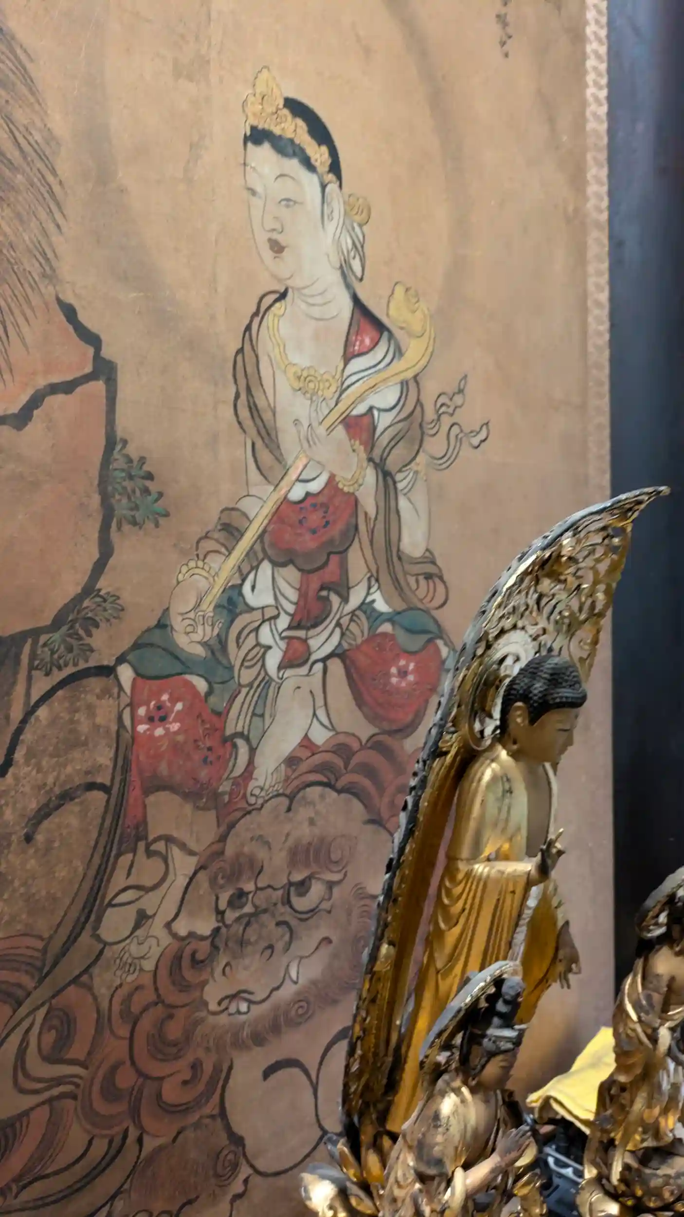京都浄土宗寺院特別大公開で参拝。城陽市の寺院は太っ腹なのかこちらも撮影OKでした😲ご本尊阿弥陀如来と脇殿に善導・圓光両大師。そして両大師の周りにも像がありお聞きしたら厨子のものが辨財天、その前が弘法大師、そして愛染明王とのことで廃仏毀釈で廃寺になった真言宗寺院から引き取ったものとのこと。2体いた地蔵菩薩の1体も引き取ったものとのことで半跏の地蔵様がそうなのかな?浦堂の釈迦三尊も撮影可とのことでいただいてきました🤗
