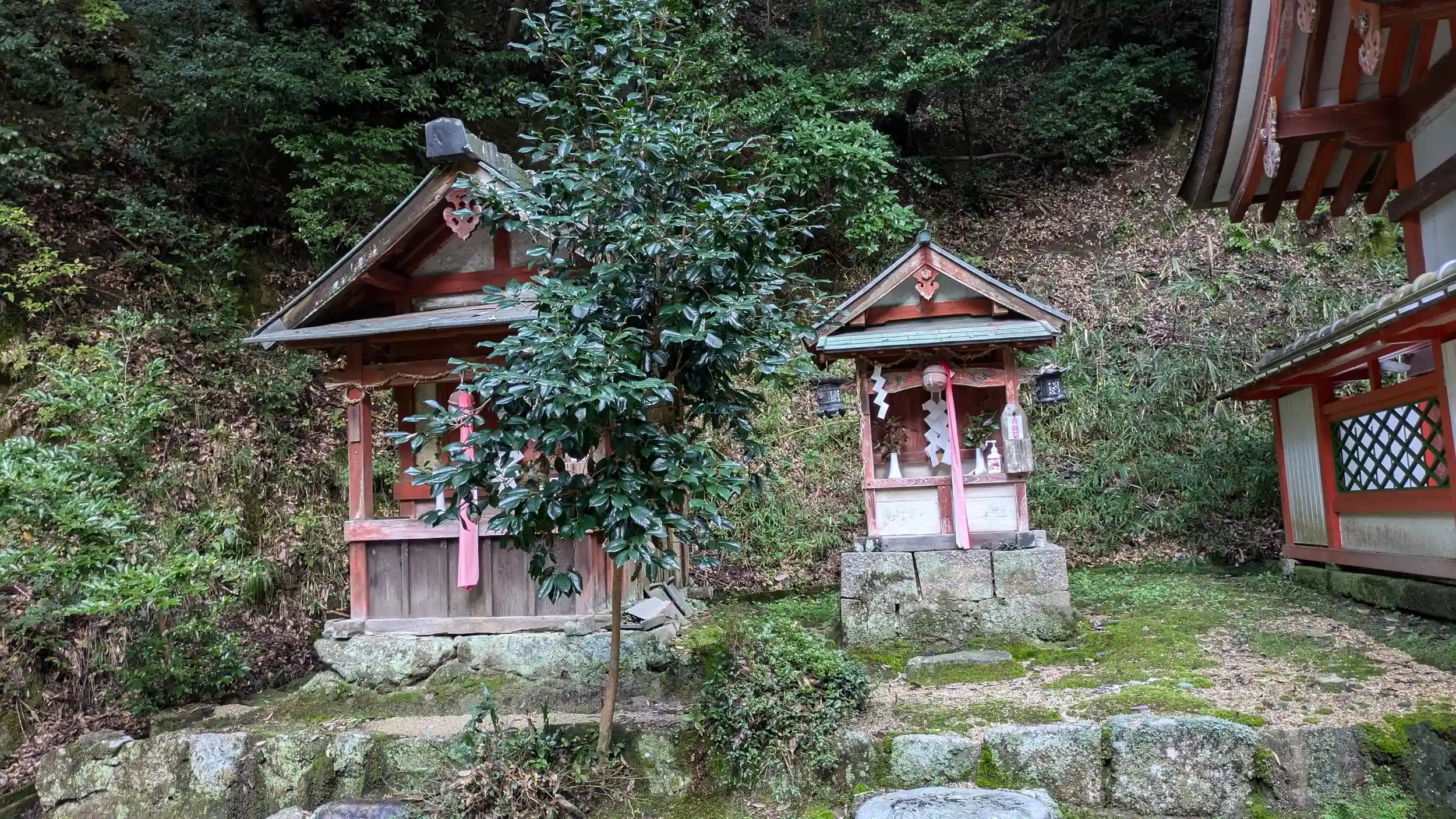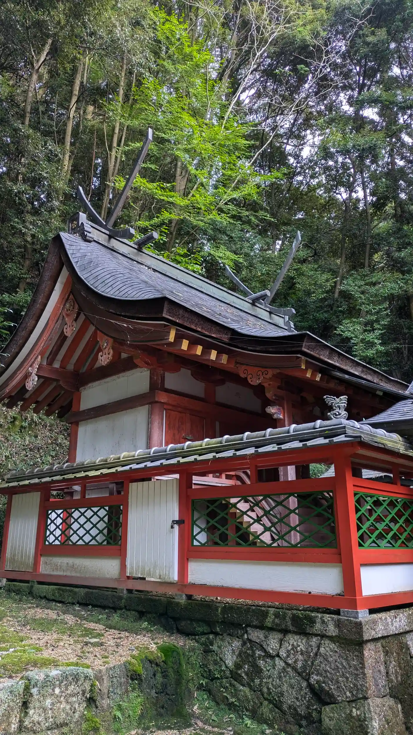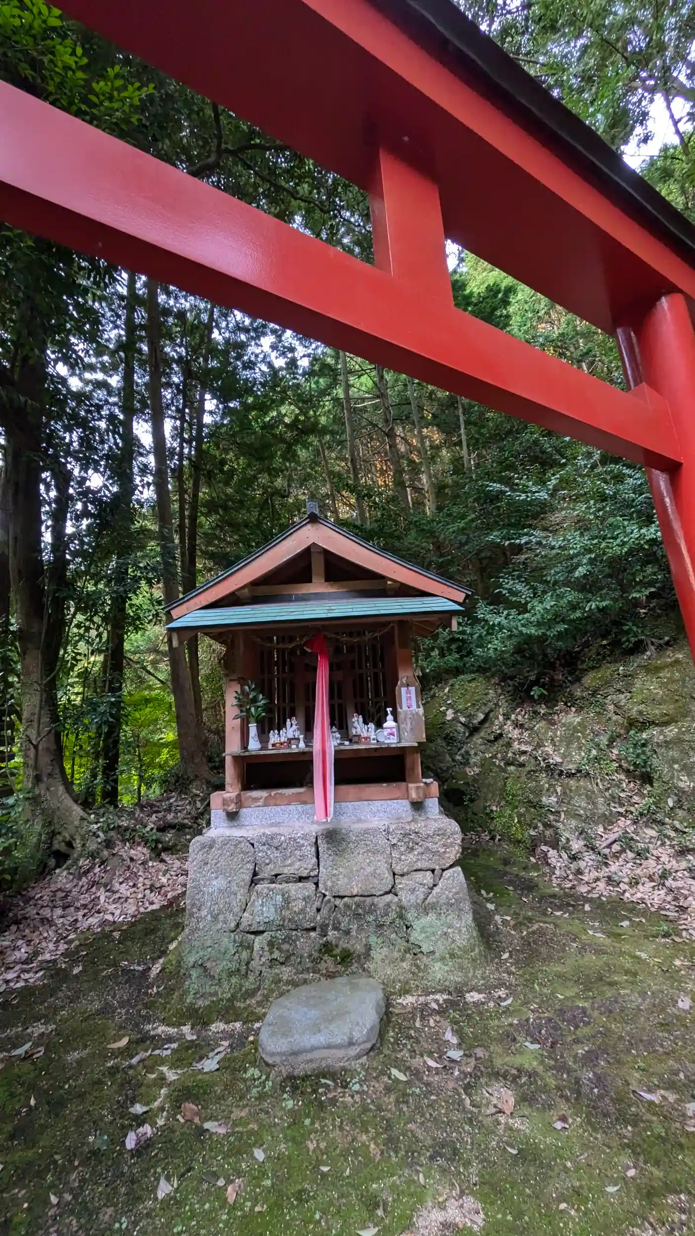 神童寺から歩いて700mとあったのでお参り。「村社・天神社」とありましたが他に由緒などはみあたらず。境内は苔に覆われており、狛犬まで・・・😅役行者が神童寺の鎮守社として勧請したらしい。また神童寺縁起にあらわれた神々(子守・勝手・金精・佐抛(さなげ)の四神かな?)もまつられているとのことで、木津川市のガイドによると正面に金刀比羅宮があり、向かって右に天満宮、左に恵比寿社、その左に牛頭・太子・金精を一社に祀る祠があるとのことです。