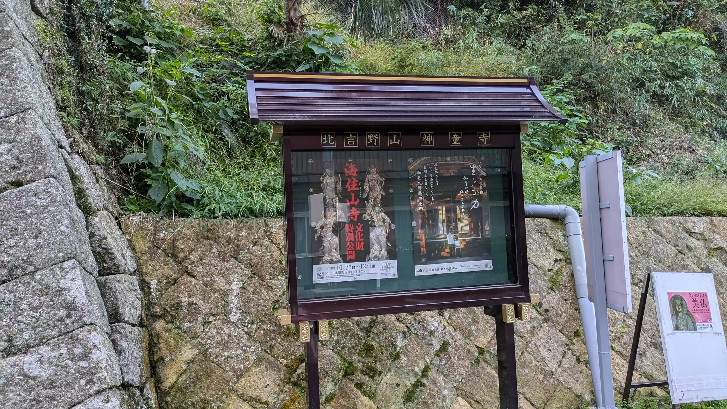 加茂駅から棚倉駅へ移動し、この日最後の目的地である神童寺へ。御霊神社の方から駅から歩きなら1時間ぐらいと伺ってましたが40分くらいで着きました。もっと登り坂かなぁと覚悟してたのですがそれほどでもなくちょっと安堵。到着してから庫裏の受付へ。御朱印帳をお渡ししてから先に宝物庫へ行くようにとのことでそちらへ。弓を上方につがえた愛染明王は全国的にも4体珍しいとのこと😍さらに不動明王は三井寺円城寺の黄不動明王を模したものらしくこちらは彩色が白なので白不動と言われているとの事。京都で白不動は唯一ですね😊しかも髪が弁髪ではなく螺髪。螺髪の不動明王は全国でも8体のみ。さらに彫刻に限ると三千院とここの2体、さらに白不動となると全国唯一なのだとか。とても貴重な仏像を拝ませていただきご満悦🤗その後本堂へお参り。こちらも貴重な蔵王権現。その大きさに驚き、見落としそうになるのが左側にいる少しうつむき加減の仏様。なんの仏様だろうと帰りに庫裏にてご住職にお伺いすると観音菩薩とのこと。南山城三十三所観音霊場でもあったようで霊場の朱印と冊子も見せていただきました。ですが観音霊場の御朱印はされてないとの事です。せっかくだから観音霊場と白不動さんと天弓愛染明王の御朱印すれば人気出るのになあ…😅