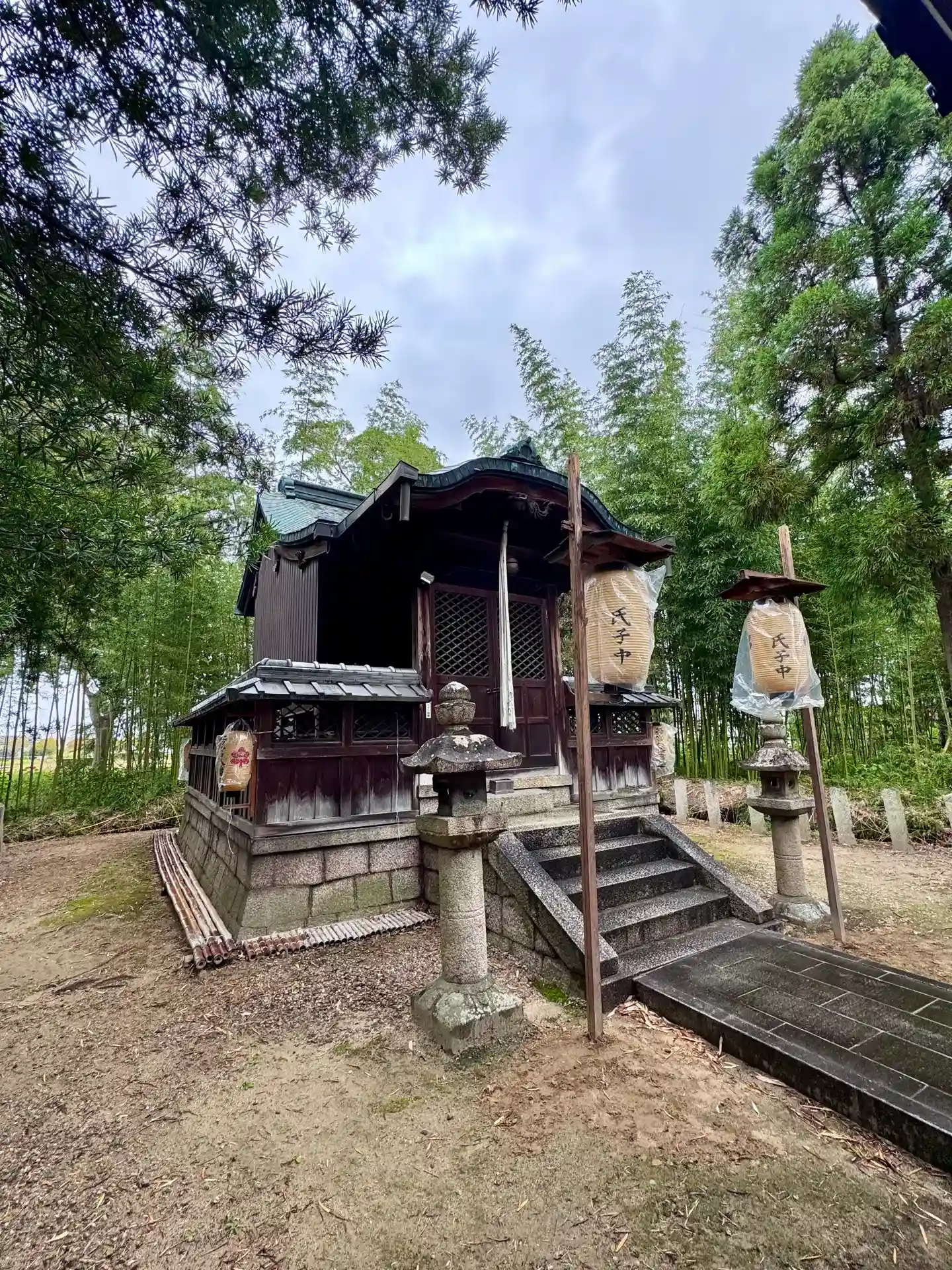 時代劇の撮影によく使われる流れ橋から10 分くらいのところ、八幡市民体育館の横に鎮座されている小さな神社さんです。