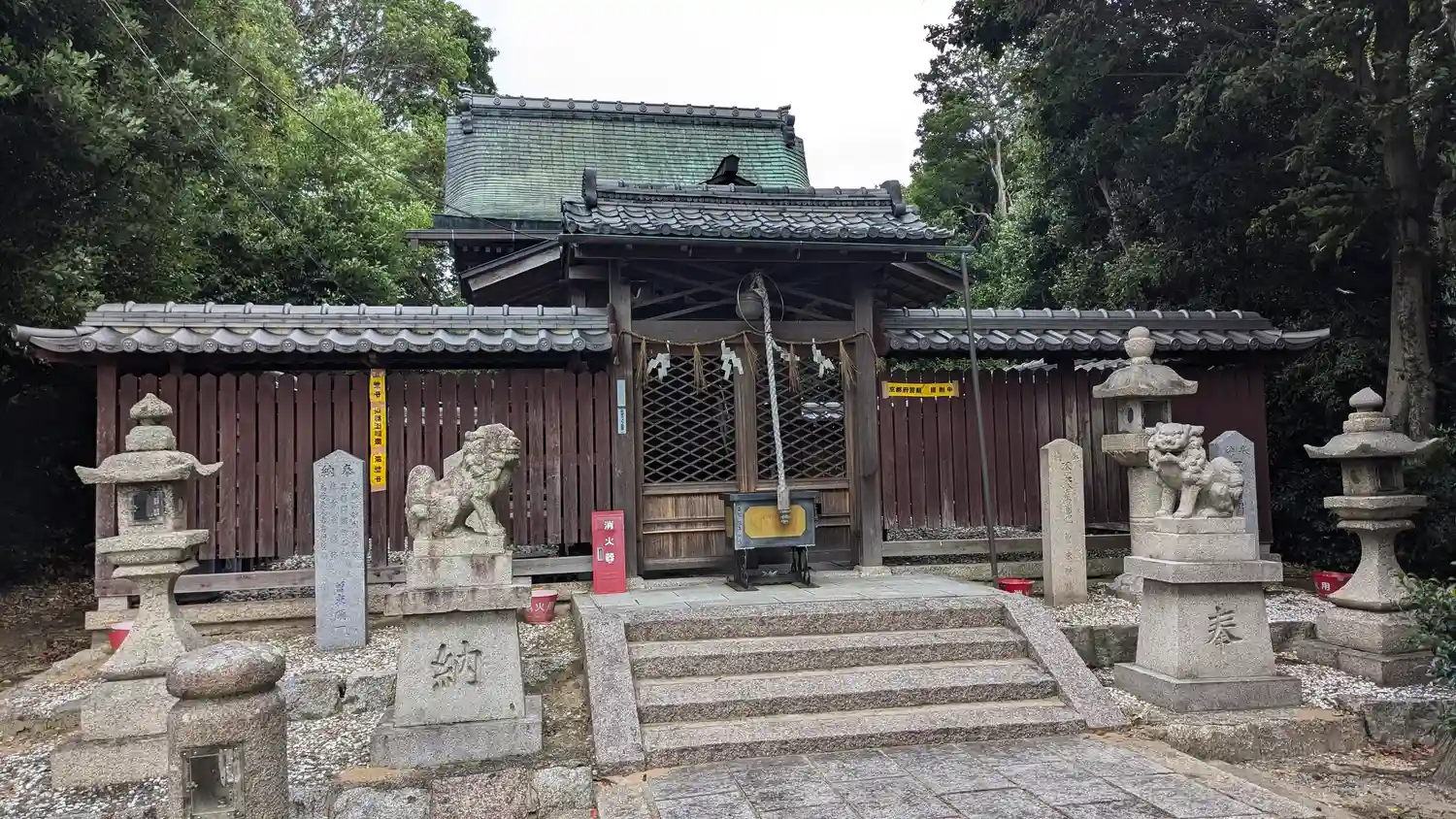 御祭神は瓊々杵命(ににぎのみこと)、須佐之男命(すさのおのみこと)、大雀皇子命(おおさざきのみこのみこと=仁徳天皇)、迦具土之命(かぐつちのみこと)です。