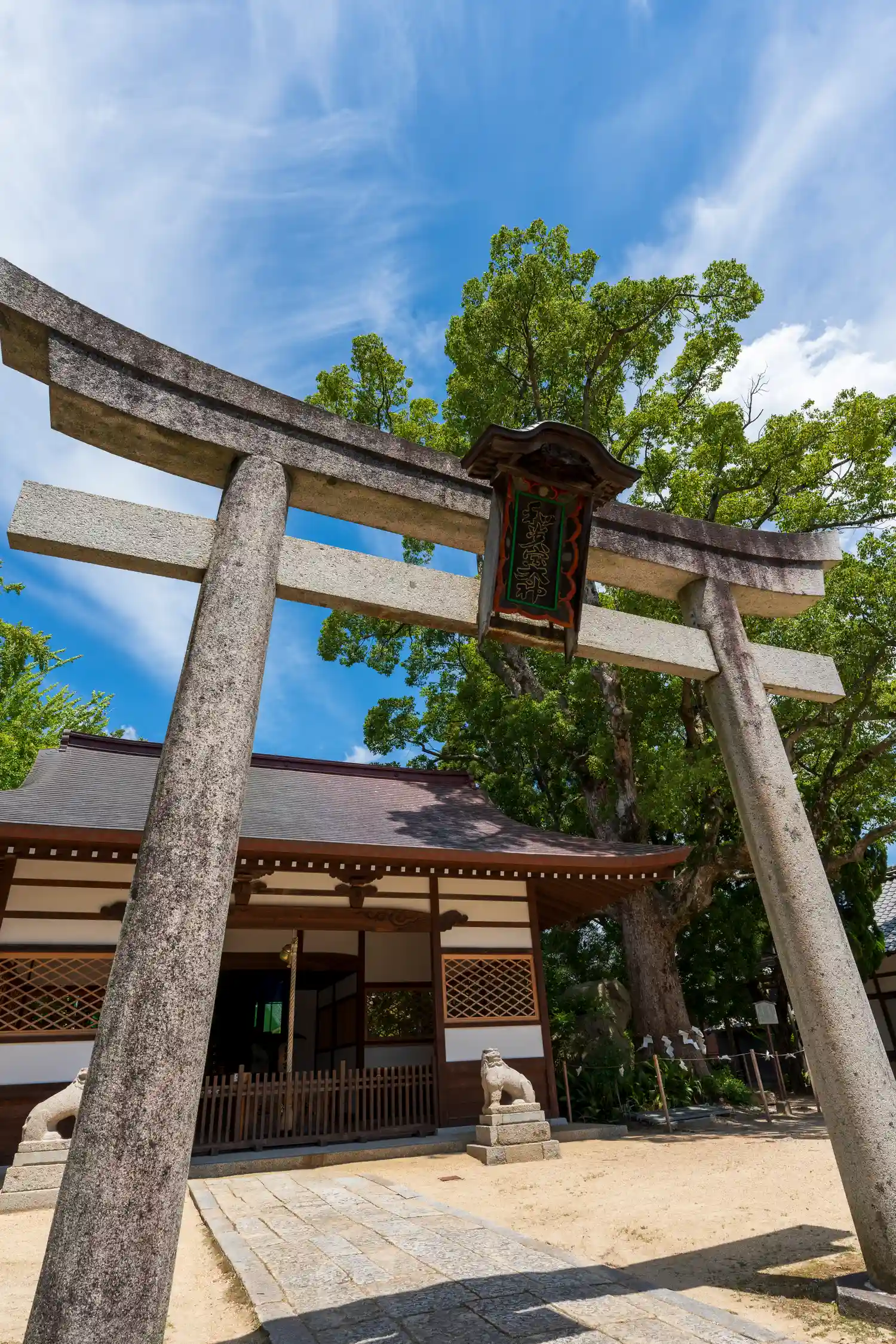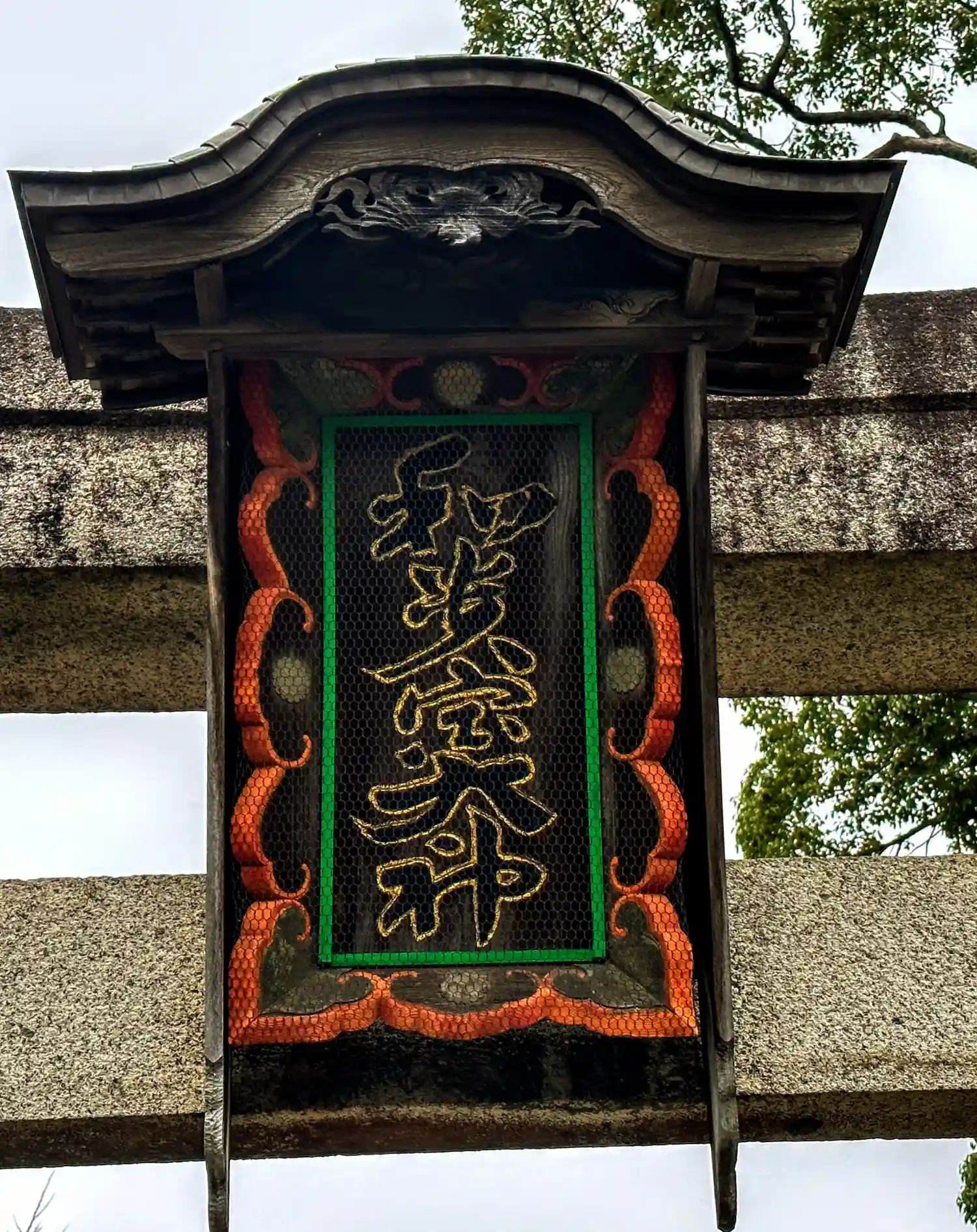 鳥居扁額は屋根付き