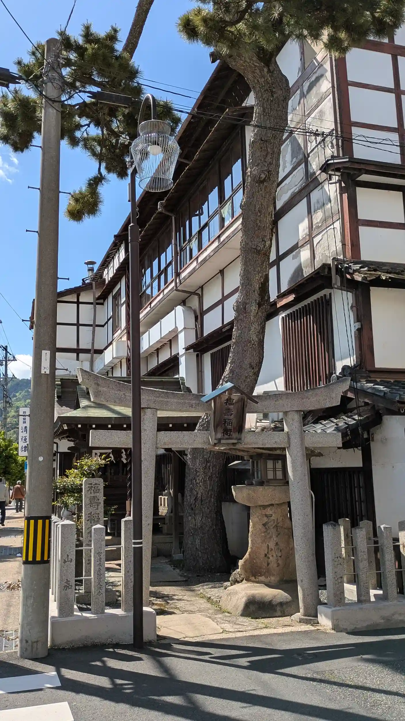老舗旅館・清輝樓の前に鎮座する稲荷さん。清輝樓は元禄年間創業の登録有形文化財(勿論宿泊できます…😅)で菊池寛や吉川英治ら文豪や京都の絵師達がご愛用した宿らしいです。立地から清輝樓と関係があるとは思いますが…。宿泊したら話聞けるかもしれませんが…どなたかチャレンジしてください🤣