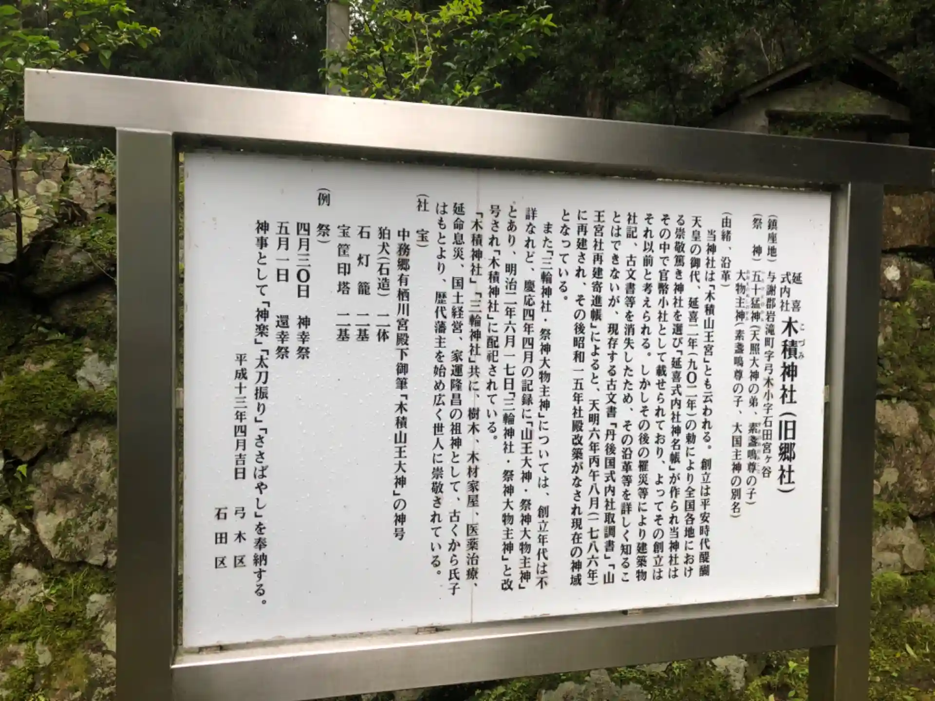木積大神ともう一つ書かれていますが、達筆すぎて読めませんね…後述する由緒書きに沿うならおそらく「三輪大神」かな?