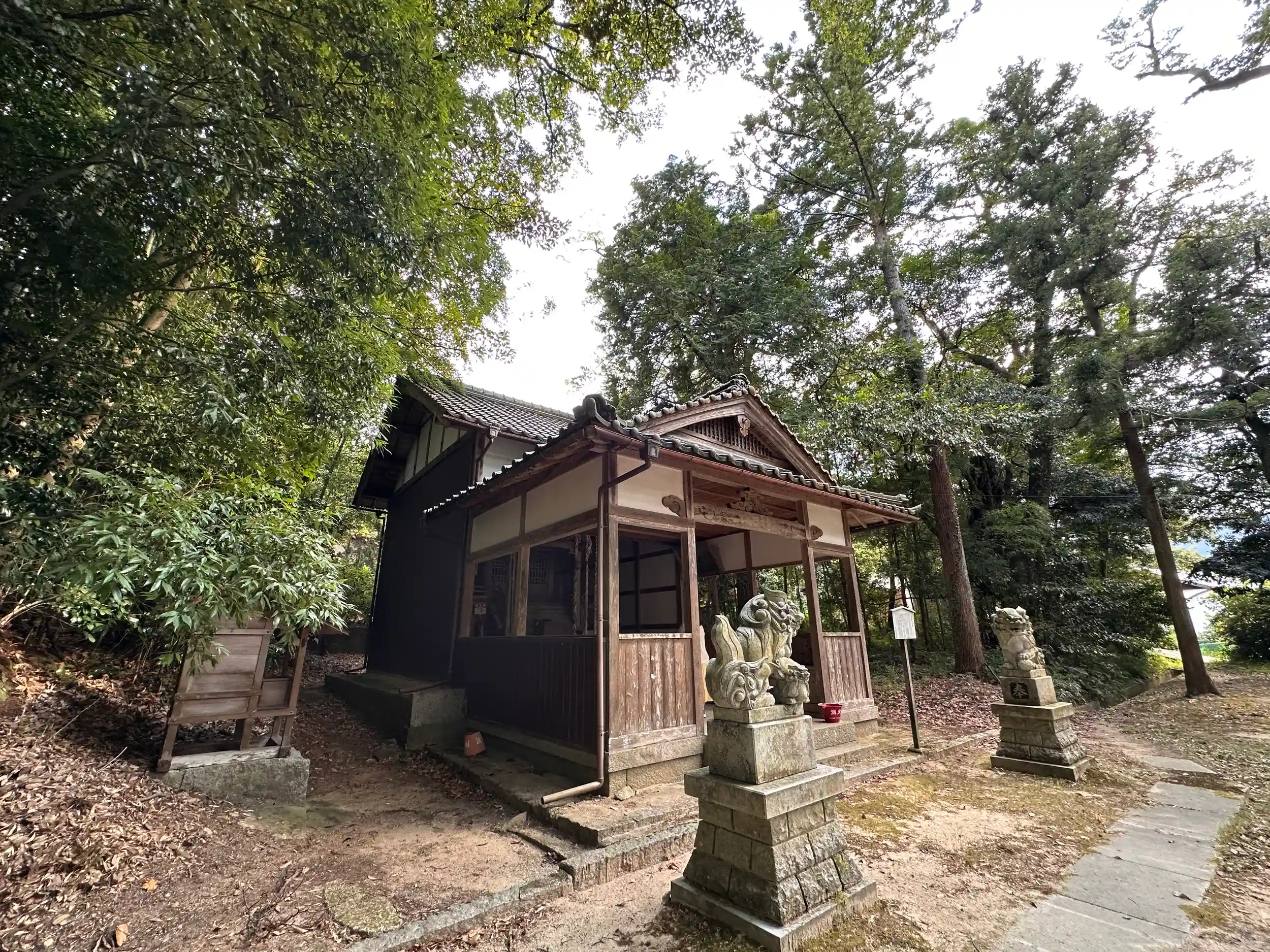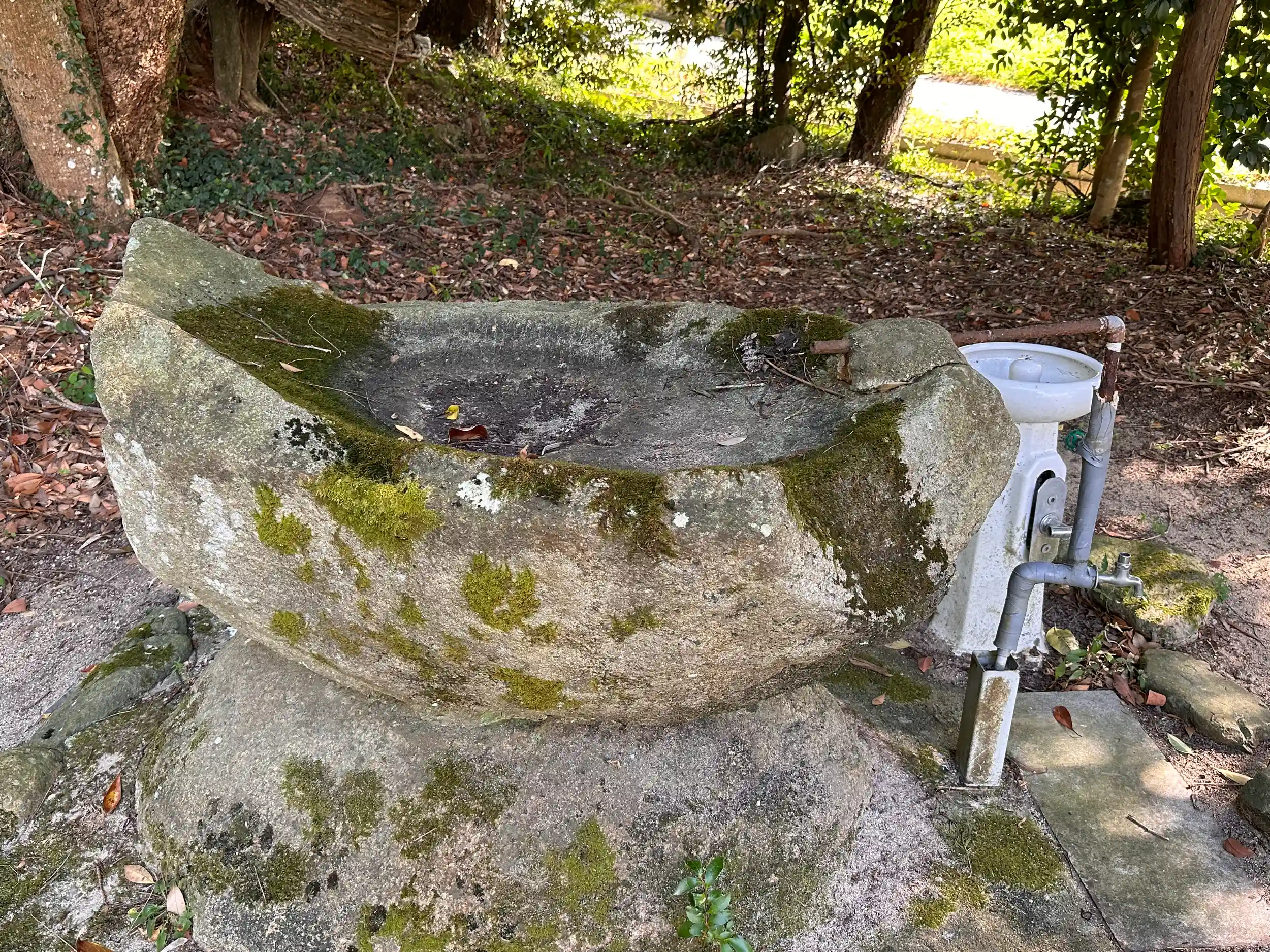 目を引く3点 ①鳥居過ぎて右にある 樹種 スダジイ幹囲5.7m ②巨大な丸石が約10個 丸石信仰、磐座信仰だったのかな ③手水舎の横の水のみ様なのか陶器製の水道 なんか違う!本殿は 一間社、唐破風、千鳥破風がついています、産土神としてまつられていたものらしいです