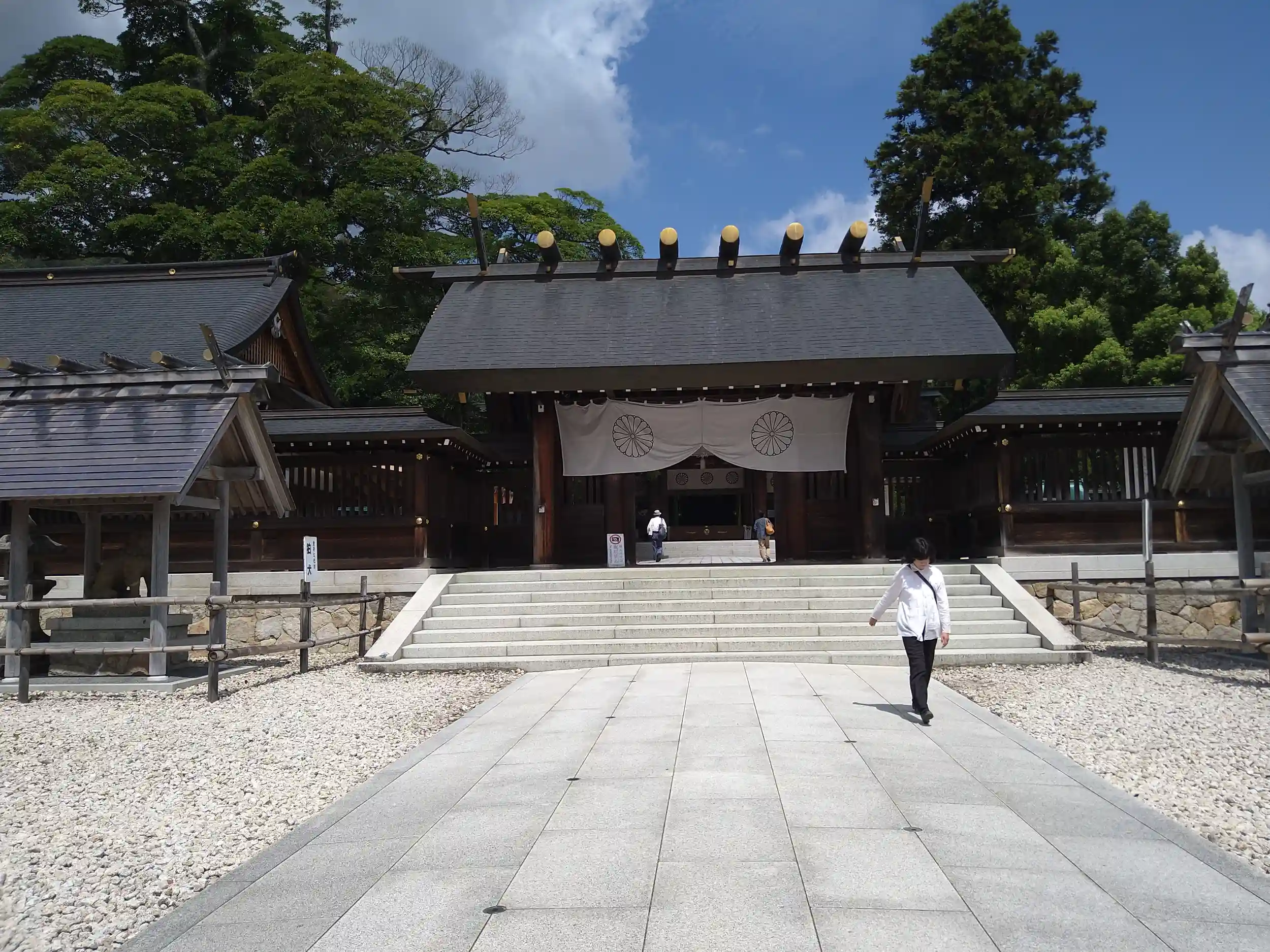 社殿など、建物は黒いのですが、参道や鳥居は白く、キレイなコントラストの神社です。